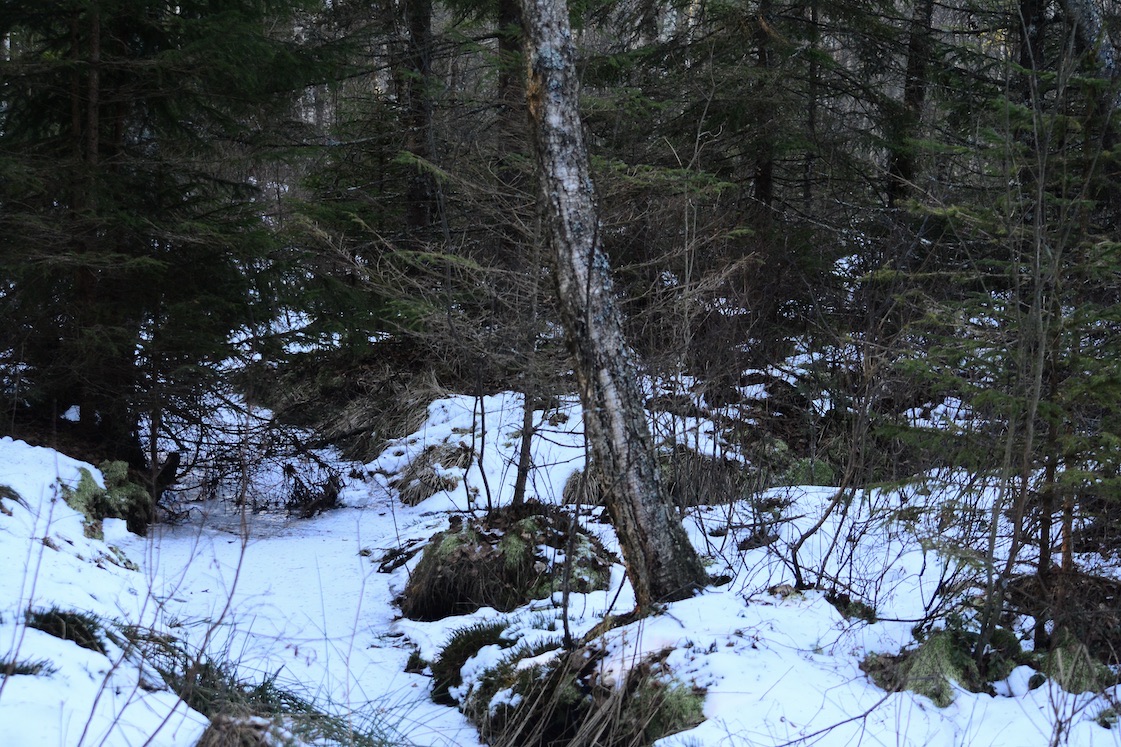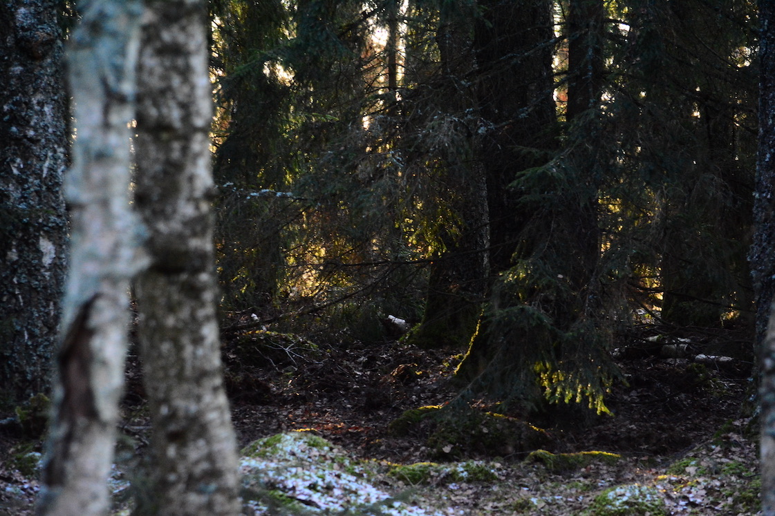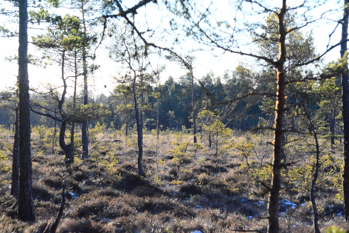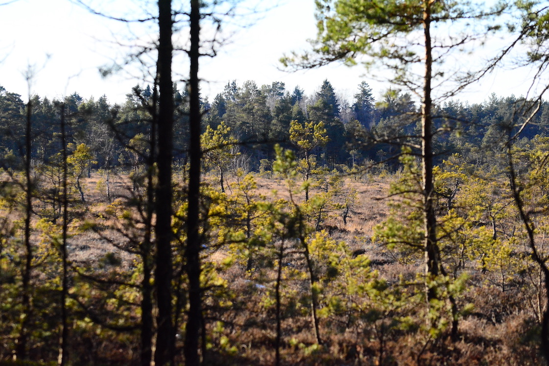 We did have sunshine on our morning walk but the wind, unlike yesterday morning, was nasty and bitterly cold. So we walked out to my favourite island in the bog and walked on the west south of it. No wind there but the sound from it sort of made me feel like it still reached us. Lots of animals had been hiding amongst the lower spruces so they were both covered from the world and also the wind if it should change direction. So even if we couldn’t see any we instead heard them run away just in case we were dangerous. It was most likely wild hogs but we do have lots of Fallow deer and Red deer there.