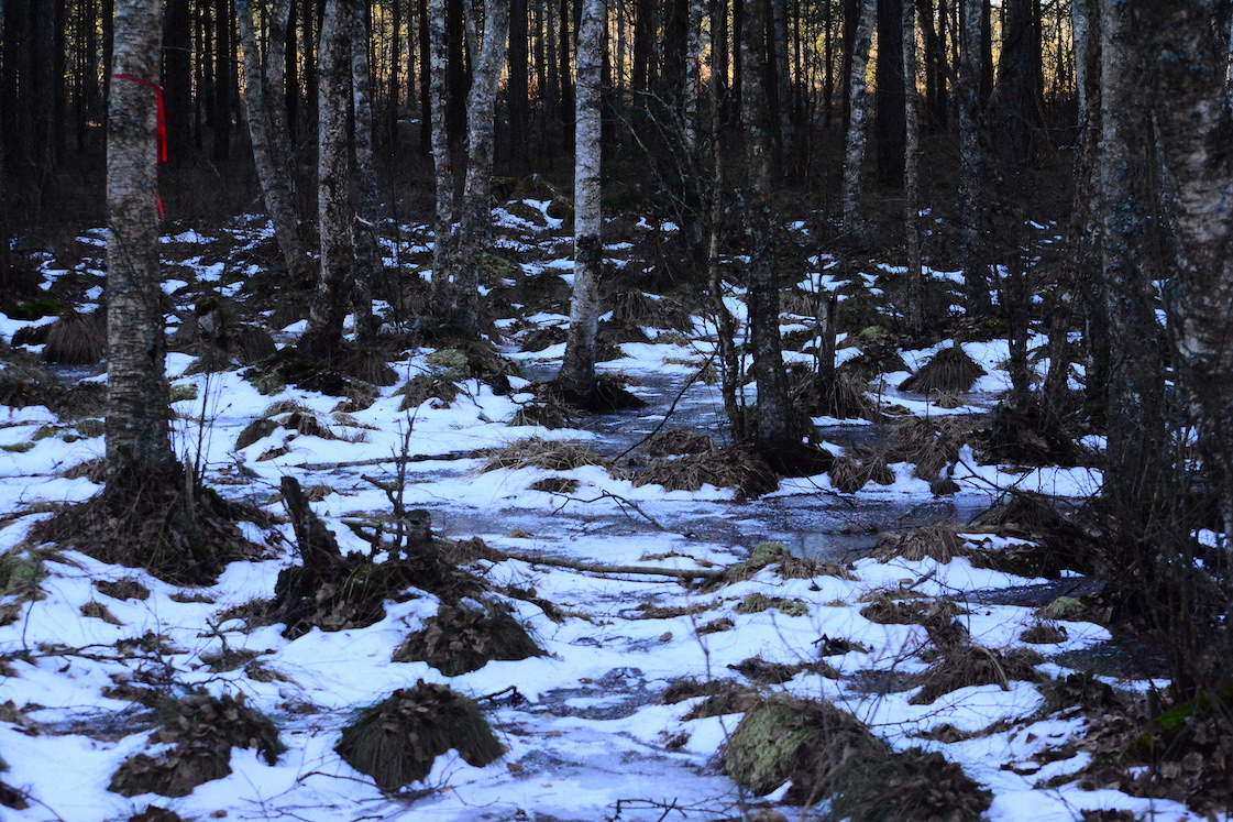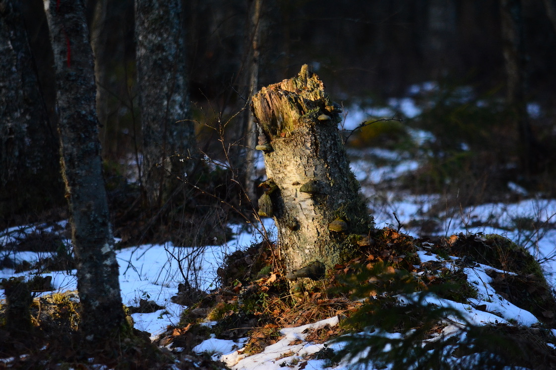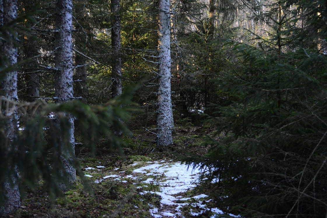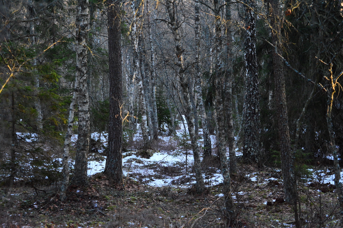 We did have sunshine on our morning walk but the wind, unlike yesterday morning, was nasty and bitterly cold. So we walked out to my favourite island in the bog and walked on the west south of it. No wind there but the sound from it sort of made me feel like it still reached us. Lots of animals had been hiding amongst the lower spruces so they were both covered from the world and also the wind if it should change direction. So even if we couldn’t see any we instead heard them run away just in case we were dangerous. It was most likely wild hogs but we do have lots of Fallow deer and Red deer there.