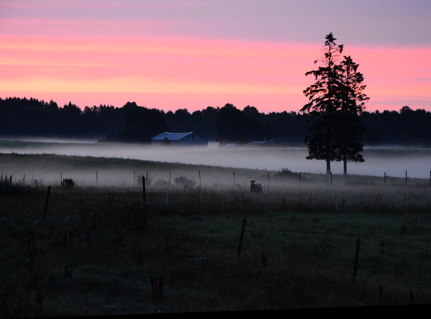 WE were lucky to have sunshine this morning and I could see morning mist in the village when looking out the window. I knew we wouldn’t get out in time to catch it with the camera so I took a couple of photos from my window. It was so chilly outside so I could see my breath when breathing 🙂 🙂