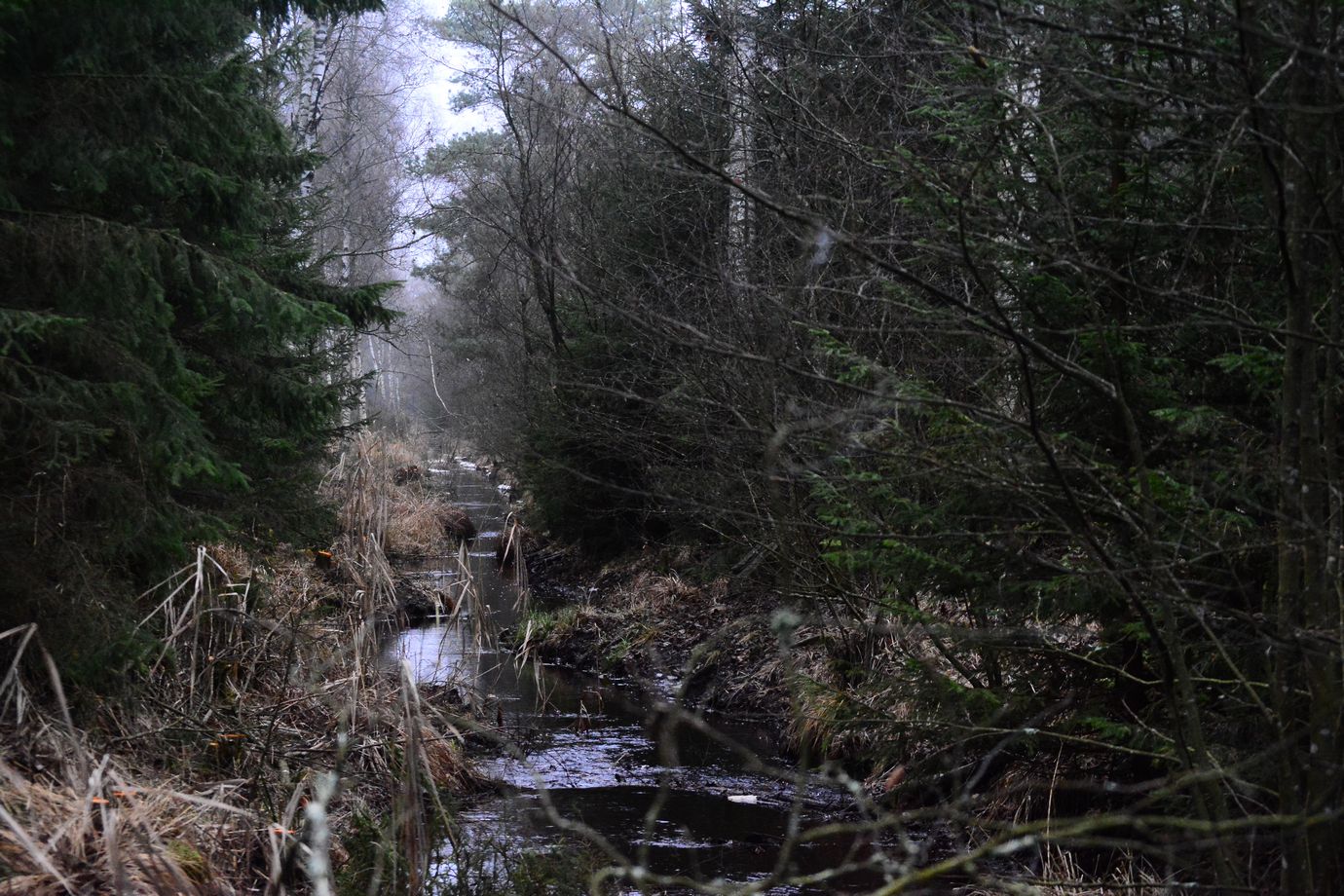 So to stay away as much as possible from the noise we walked along the creek up streams. WE didn’t pass the creek where we usually do but continued towards the bog. If we would have continued to the little lake in the bog it would have been better to walk on the other side of the creek but I had the wrong boots on, one can continue on the side we were walking on too but it’s a bit more tricky with swampy areas and small spruces.