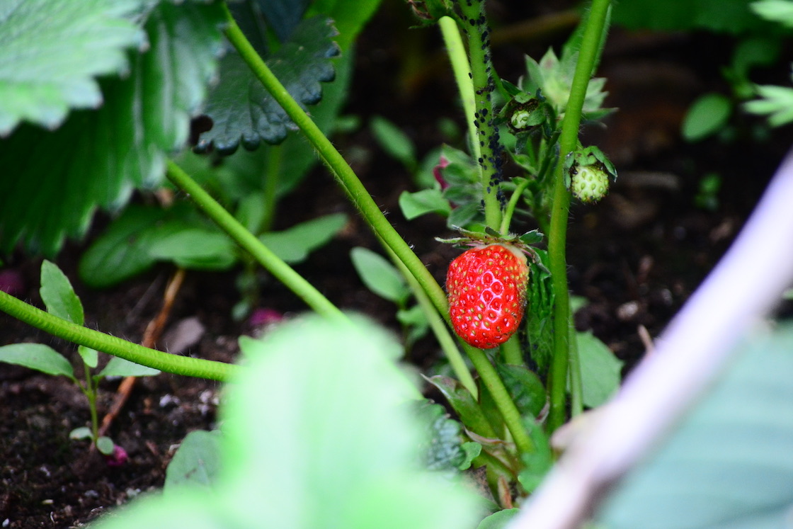 I was too eager to taste that first strawberry πŸ™‚ The coming ones will stay a bit longer before I pick them πŸ™‚