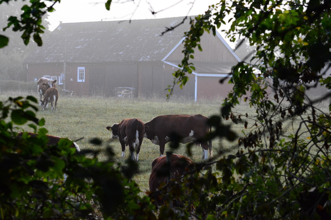 It was almost totally quiet, only my neighbours roosters could be heard. No other birds could be heard and for some reason fog does this to birds, they quiet down but I have no idea why. Then again fog quiets down everything, even the forest machines and tractors are harder to hear. Actually even Alma was more silent when we passed the new neighbours than she usually is π