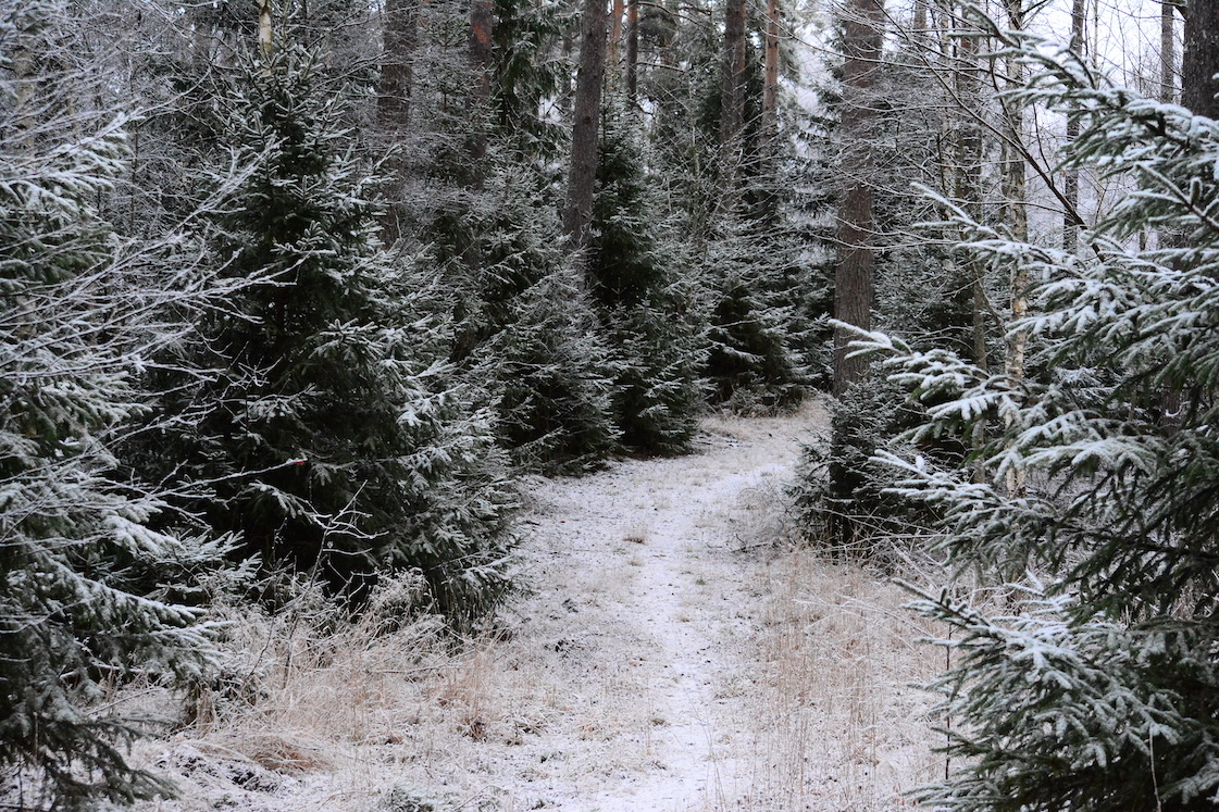 I had a parcel waiting for me at the grocery store in Gudhem so I decided that it was best to pick it up before we went out on our morning walk. I had ordered an aquarium book from 1942 so that I would have something to read this christmas plus the fact it is so old that I would be able to read about cold water fish people since long has forgotten about π I had hoped to find shredded coconut as well because I had forgotten to buy some when I went to the store yesterday. There’s nothing mice seems to like more than shredded coconut. Unfortunately they didn’t have any but it did remind me of potatoes when I saw the last two bags they had π