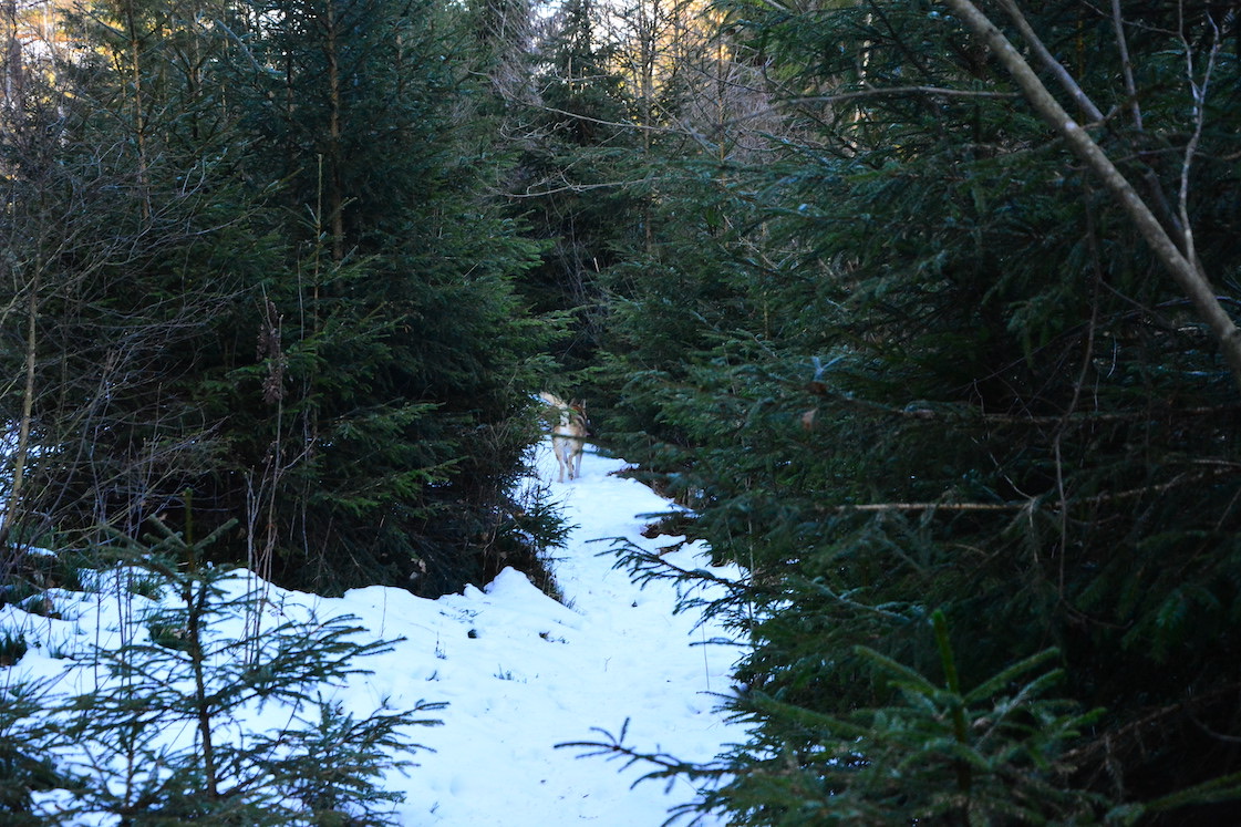 Not for long though, he returned a few more times with the same result from Alma and the guy knew he wouldn’t stand a chance today š š š Alma was a bit all over the place after that for quite some time but eventually she did calm down. It wasn’t any from “our” hunting guys so I guess he must have come from the castles grounds. So since the hunting season continues until late February (wild hogs and foxes can be hunted longer though) this might happen again š and as long as the dogs are as polite as this one there’ll be no problems from me š