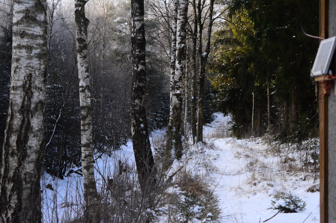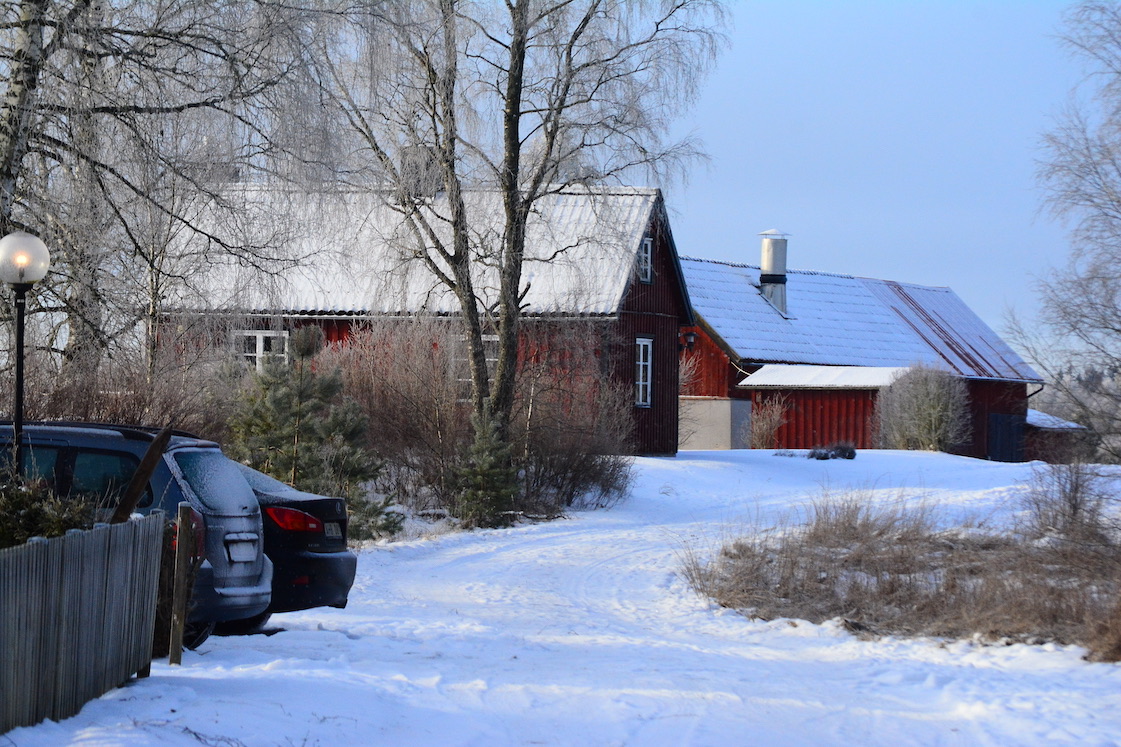 It was -20C (-4F) when I woke up this morning and I didn’t like it even if it actually was a really beautiful morning here. A few clouds at the mountains but otherwise a blue sky. We did eventually have our morning walk because when the sun finally rose up this awfully cold morning it actually gave away heat 🙂 The snow on the south heading part of the roof is now gone and I did hear dripping later in the day. Still it never really came close to being warm outside the sunshine.