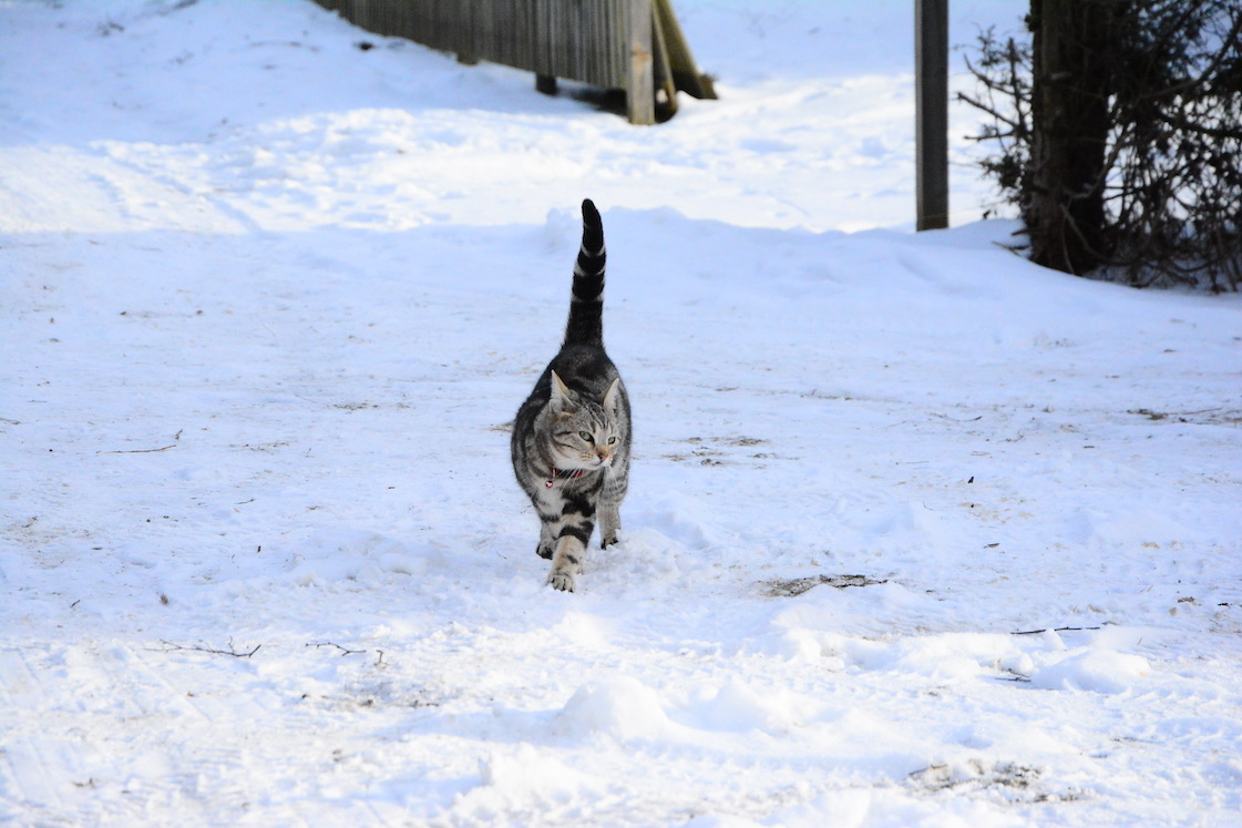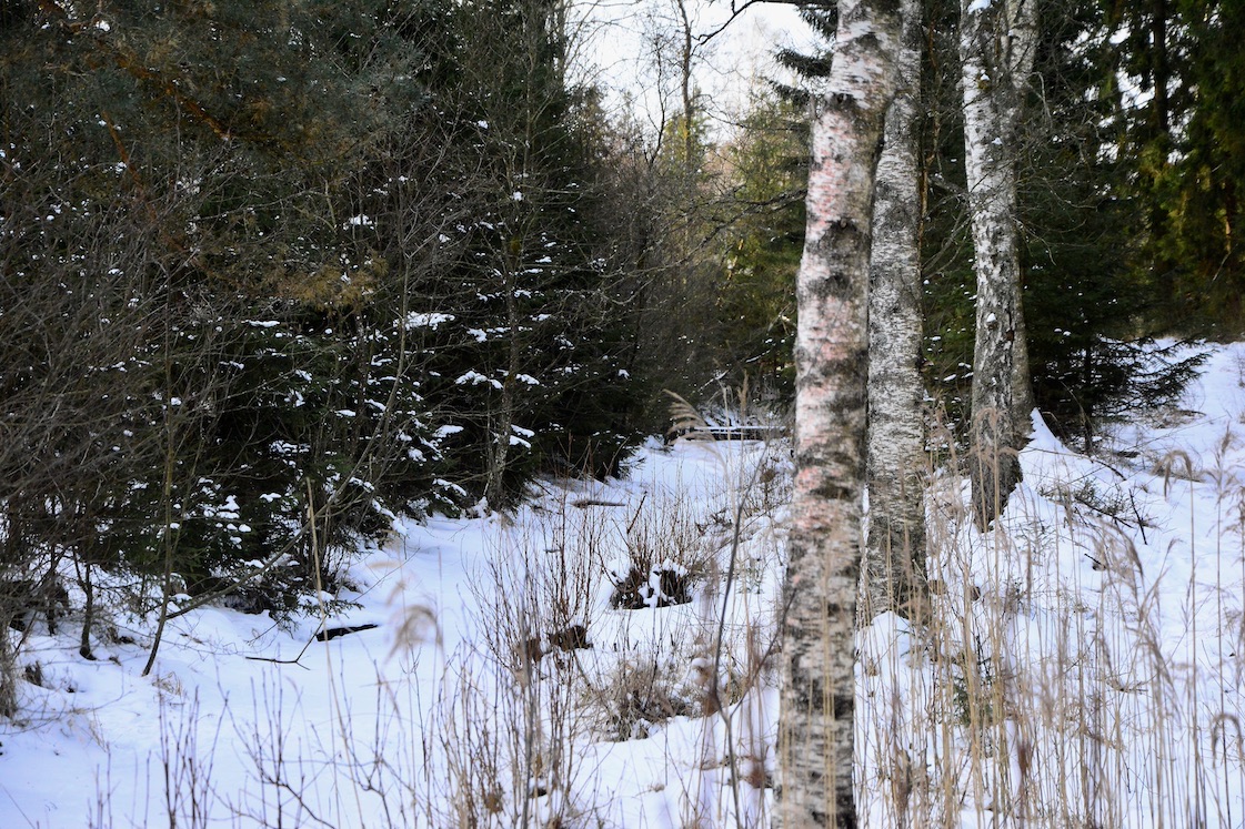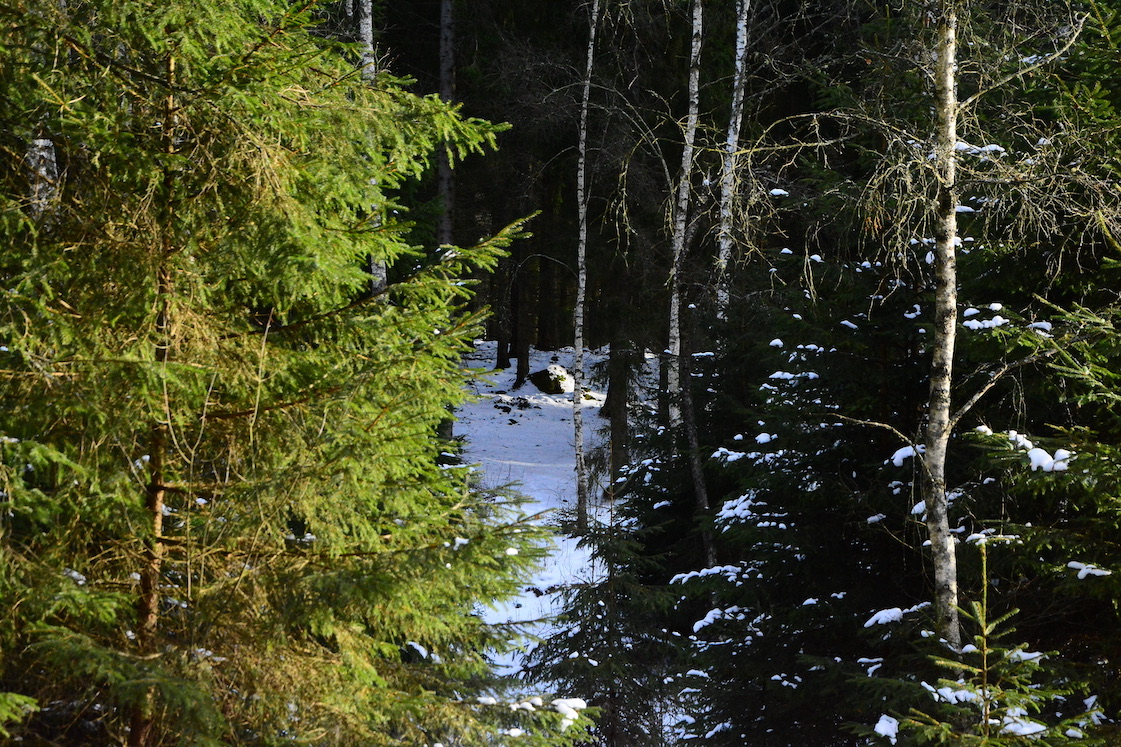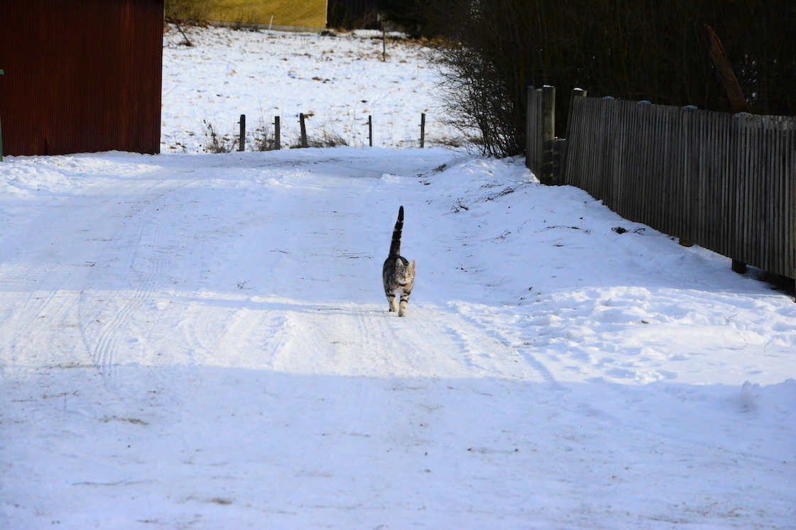 I have been suspecting that we have another mouse in the cottage, the monster has been a bit too interested in the cool cellar lately. This morning it sat in the box trap, very calm and not looking too bothered by being caught. I waited until it was less cold outside and today I chose another place to let it out. It is a hollow log and close to an empty stable so that it has a chance to move there during the cold nights. I couldn’t keep it since one previous prisoner chewed its way through the plastic so any animal can get out without any problems. Perhaps I get a real cage for next winter so if I catch any I can have them there until it is warm enough to let them out in the wild.