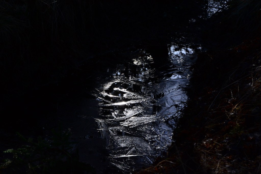 We had frost yesterday night so there was still ice on the creeks when we were out on our morning walk.