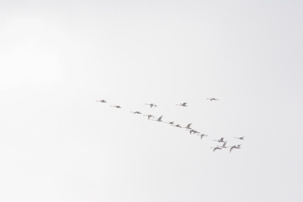 A bit grey and dull this morning but rather warm again, warm in this case means 6C (42,8F). If there was any wind I didn’t feel it, not in the garden not in the forest where we had our morning walk. They had guessed the sun would show itself before noon so I waited a while before we went out. Birds were singing and Swans were flying in from south. I did go to the supermarket and I could see fairly many cranes in the area now. Yesterday they counted 3180 of them by the lake.