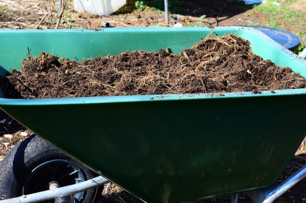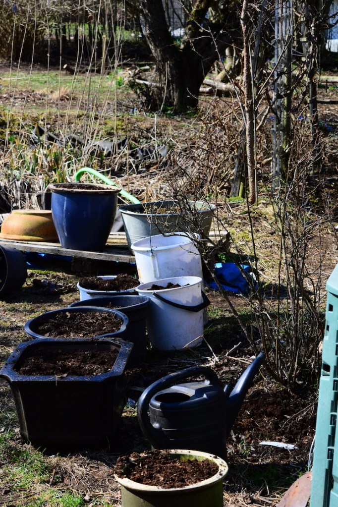 We’ve had sunshine all day and only a few clouds passed in the sky. Lots of deer running around and of course all the bird song made it feel like nothing was wrong in the world 🙂 I started to empty one of my composts and filled eight big pots and buckets plus my rather huge wheelbarrow. I emptied from the bottom up and when there was around a third left of the compost I stopped because I noticed that part needed a bit more time to be ready. That compost is said to be a hot compost even though the sides are really thin but they say it’s a new material that insulates really good. I’m inclined to agree but only until it is filled up to two thirds, after that it just works as any compost to be honest.