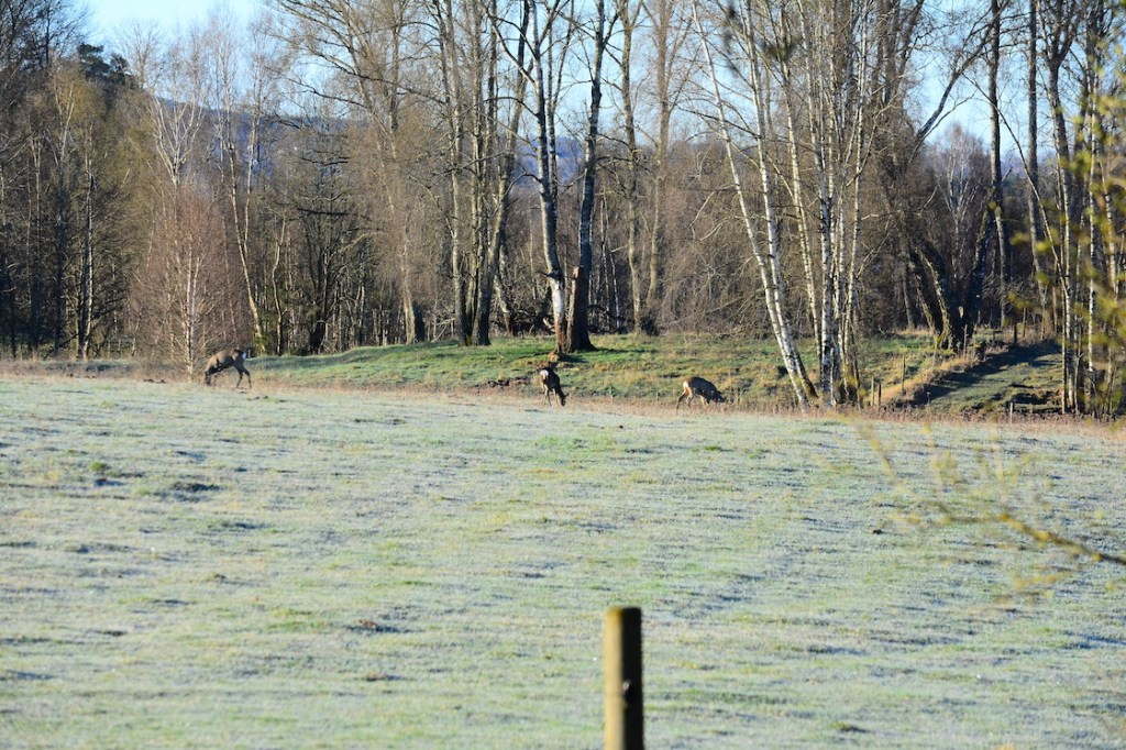 Lots of deer out in the fields now and I noticed that three cranes must have been in the field just outside my cottage because they flew just above the cottage roof when they saw us. I hear them in the evenings now but still haven’t come close enough to get a photo of them. We had fewer cranes by the lake this time, lots died this winter from bird flu down in Europe. Not only cranes but loads of other birds as well. Here they nest and stays by themselves almost all summer but during winter they gather in much bigger groups and if one get the flu most of the others will get it as well. They noticed that lots more cranes danced this time, mostly because lots lost their partners this winter.