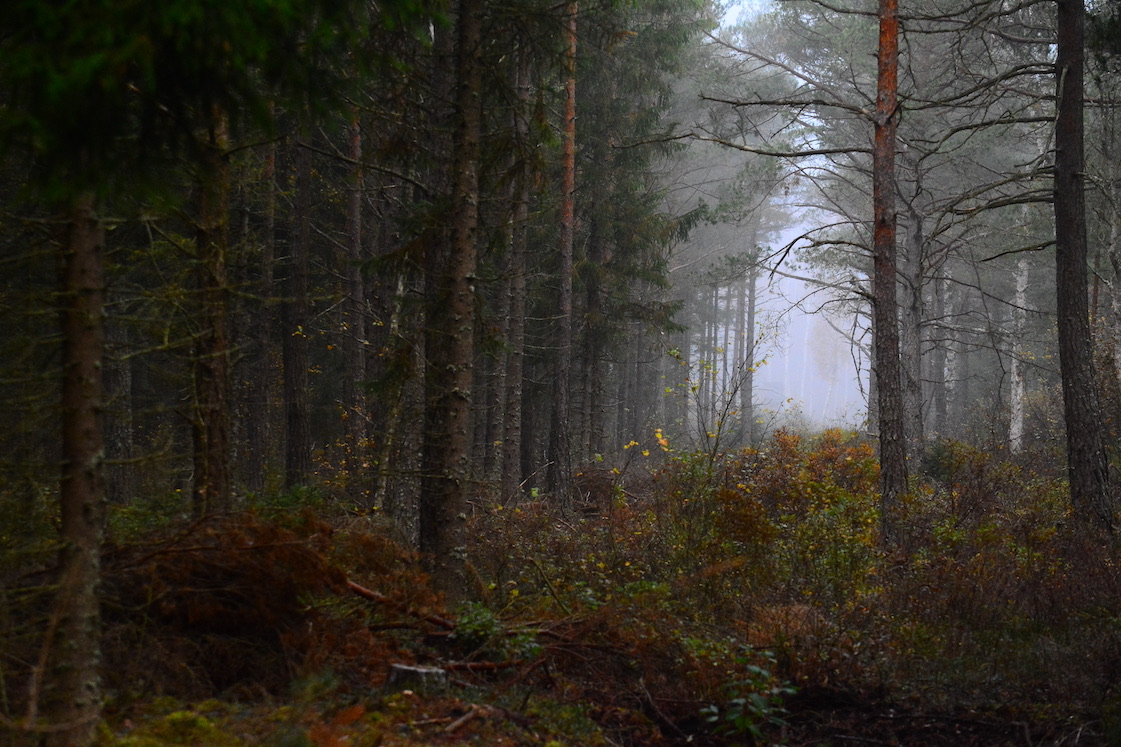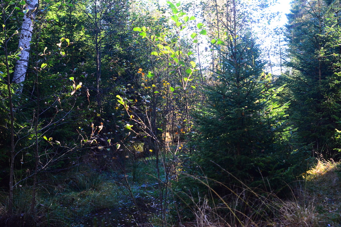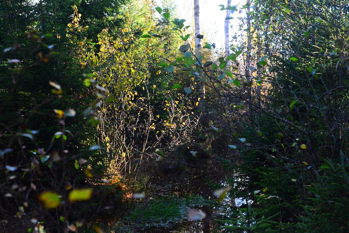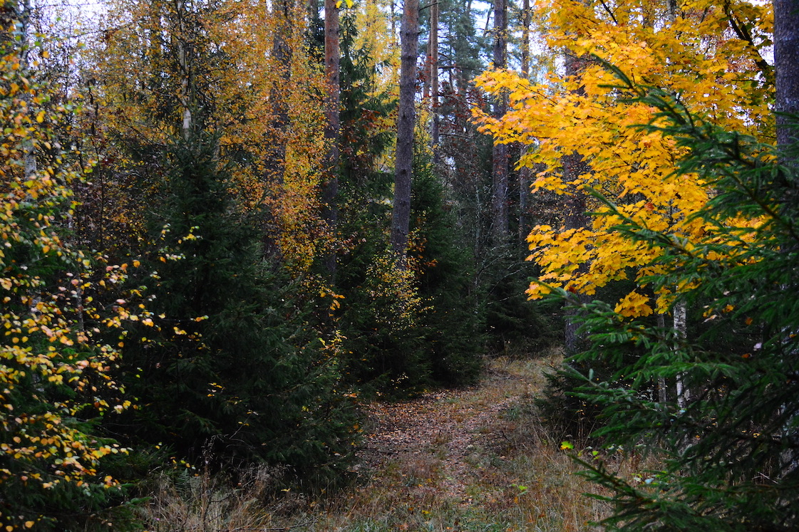 Today we finally could walk up and in to the older forest, nothing much had changed since the last time we were there except that the fallen trees had been removed. I don’t know why but it always feel safe when walking there and it is a bit odd since there’s nothing dangerous anywhere in this surrounding π Also compact spruce forest isn’t even my favourite kind of forest to be honest. I guess it’s because not a sound from the outside world can reach in there, not even now when all leafs are falling off the trees outside.