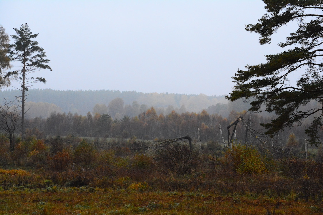 No hunters in the forest but lots of moose flies but since it was as chilly as it was they were easy to remove and kill. Wild hogs had left just before we arrived at the bog so that could be the reason we had so many moose flies. Lots of birds tweeting and we did see a roe deer out in the fields.