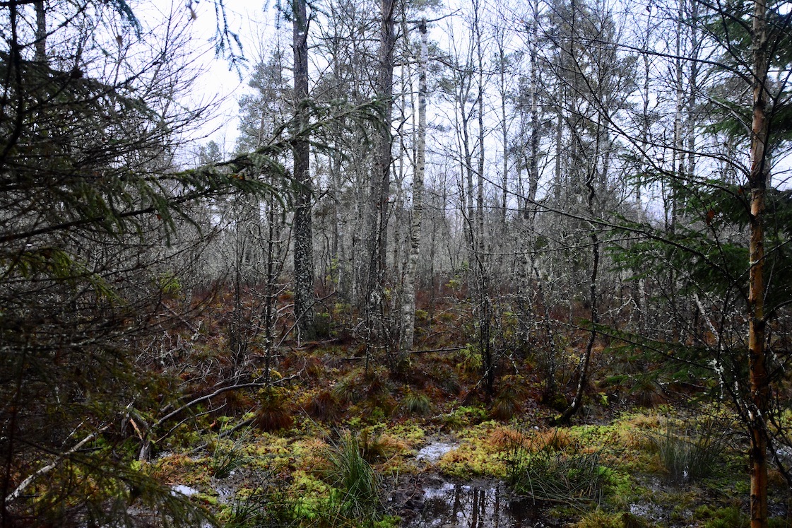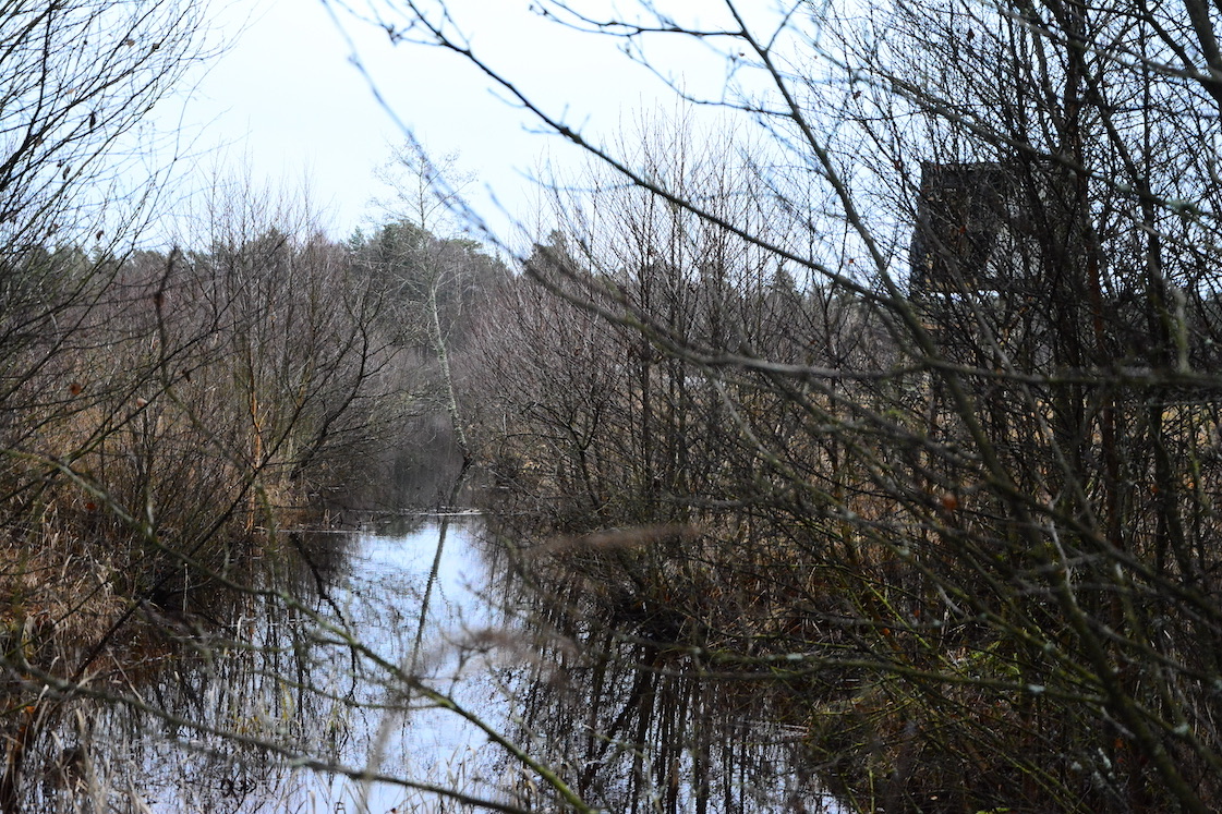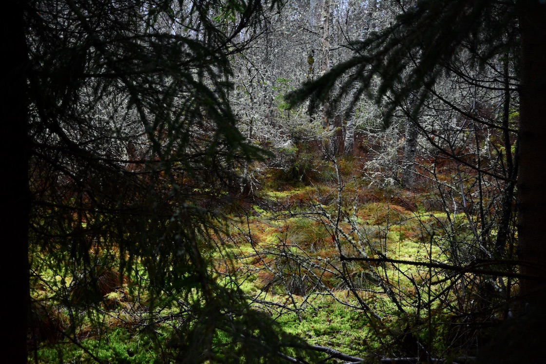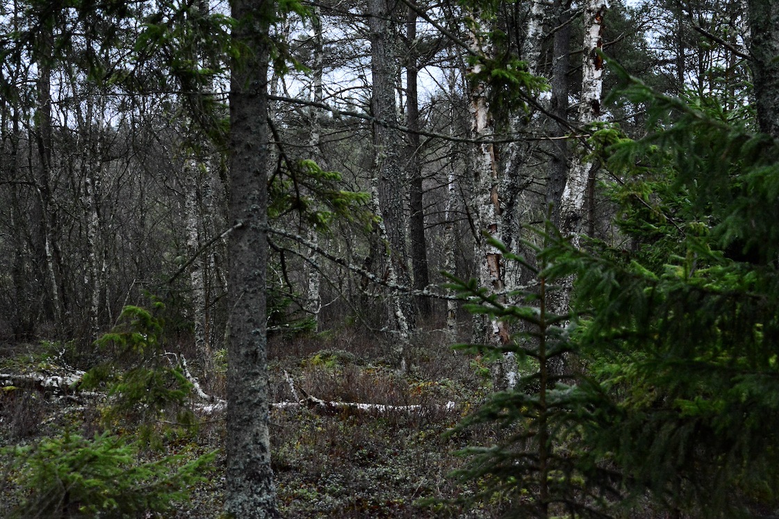 There was almost no vegetation growing in the bog (except for the pines) when I moved here 25 years ago but long draughts have made sure that birches thrive. The idea was that they weren’t allowed to keep the ditches so that the water level would rise but nature has another idea. So now when animals walk here I can’t see them, just hear them.