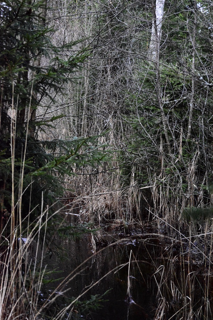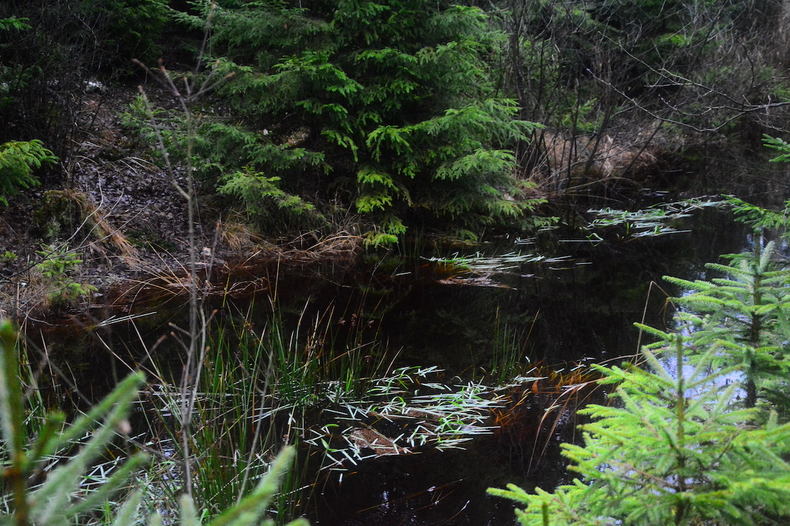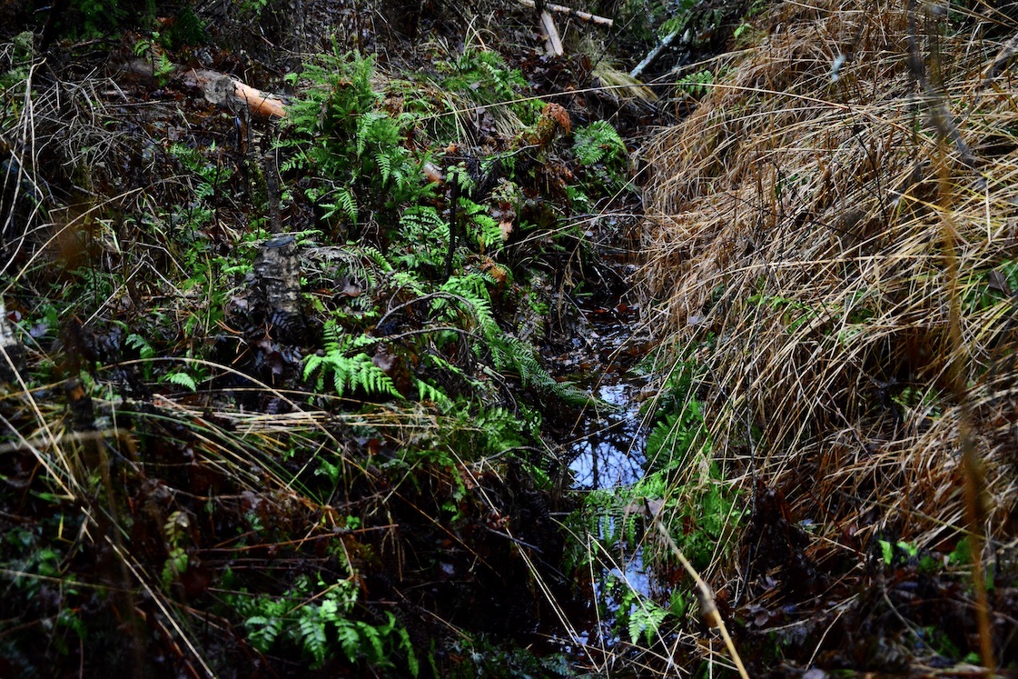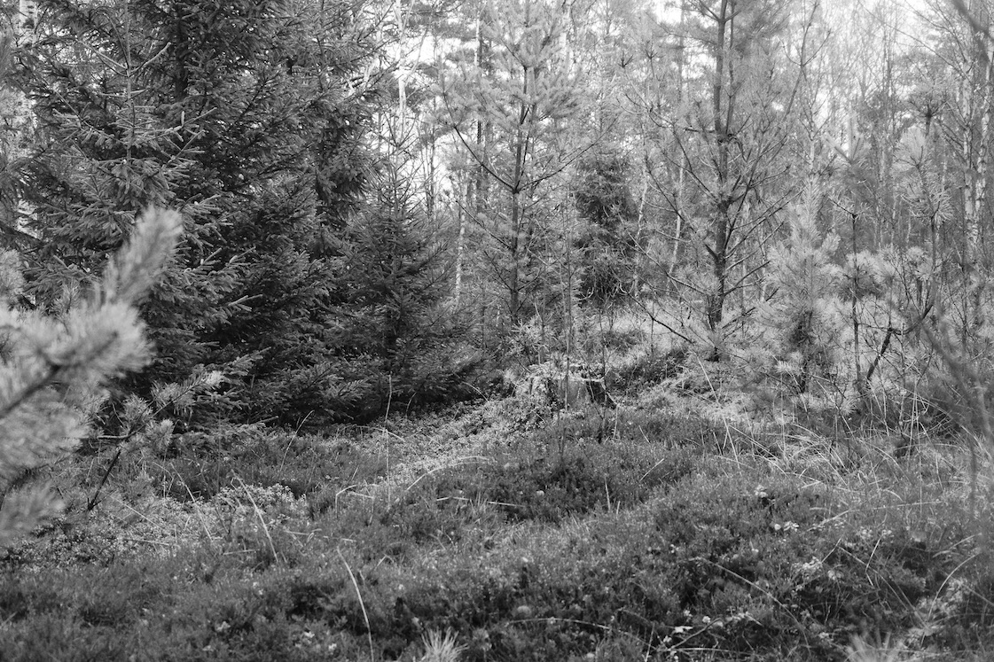 There was almost no vegetation growing in the bog (except for the pines) when I moved here 25 years ago but long draughts have made sure that birches thrive. The idea was that they weren’t allowed to keep the ditches so that the water level would rise but nature has another idea. So now when animals walk here I can’t see them, just hear them.
