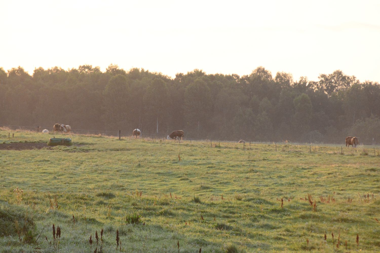 We were out on our morning walk the same time as we were yesterday and it was slightly cooler today, still no flies oddly enough. I don’t miss them but they are important for all the birds so I do wonder what has happened to them. I wish this was a sign of the coming maps fly season but I’m pretty sure those nasties will be as many or more than usual π π π It was so cool and nice but like yesterday the heat arrived before we reached the cottage, the difference today is that a cool but weak wind is blowing and it helps a lot. Even if the ground still is slightly wet after the thunder day I still watered the plants I planted this spring plus I gave a little extra to those I planted last year. Β Almost all plants that were damaged by the last frost now have new leafs, all but one red mulberry tree. It’s alive and well but just refuse to grow new leafs and I have no idea why.