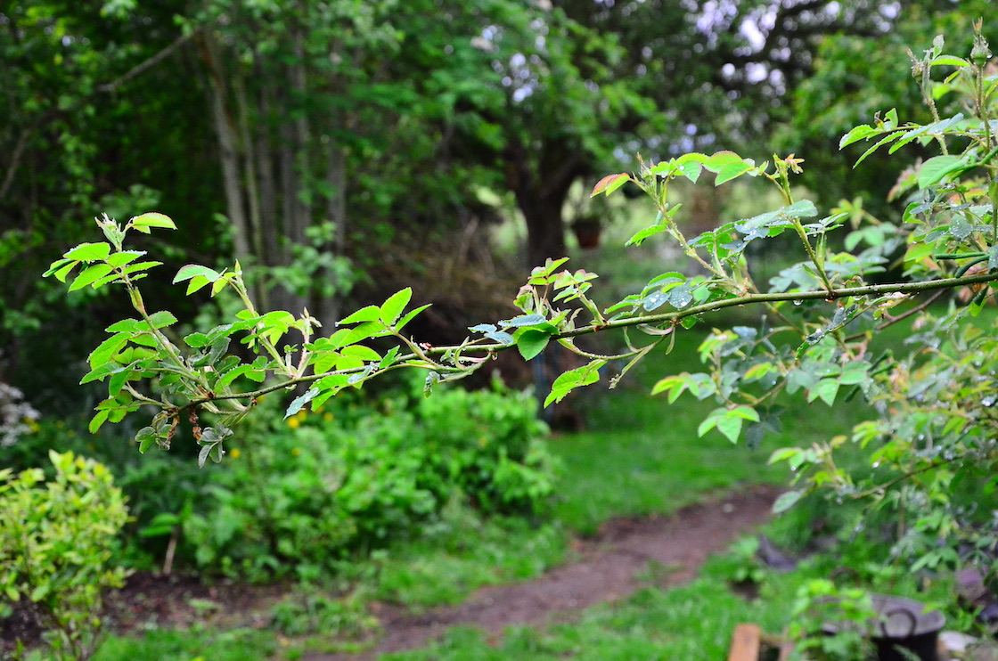 The storm did arrive before noon and it came from a direction that made it touch my garden and cottage and the wind was pretty bad. My Chinese catalpa even bend to the wind and I don’t think I’ve ever seen that before. The wind now comes from southwest and stays away from my home but I have a window open so I can hear the roar when it passes through the forest. I like that sound but I like it even better when it doesn’t reach my cottage 🙂