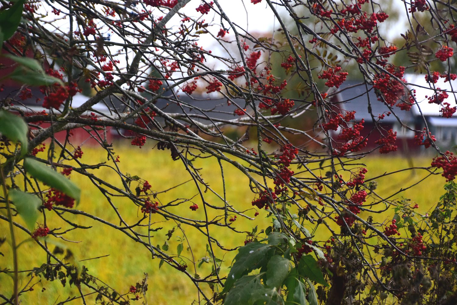 I wouldn’t say that a storm passed by today but the wind was hard and it roared when it blew through the forest. My garden was totally wind free because my neighbors cottage took it all and it was surprisingly calm in the forest where we walked, the tree tops swayed but very little reached us on the ground. Warm winds though so it has been rather nice to be outdoors and now there’s only a few walnuts left hanging in the walnut tree.