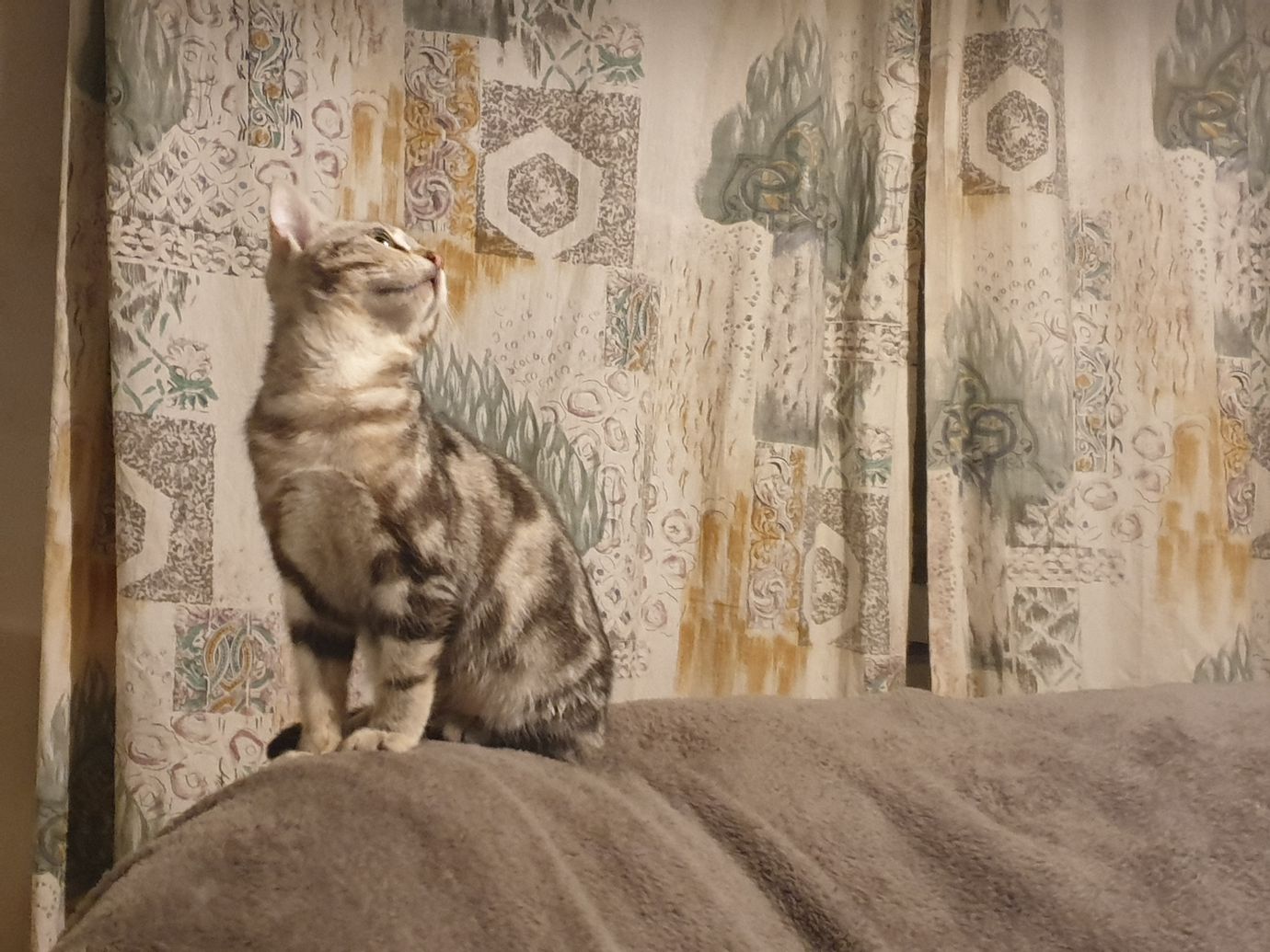 The dogs are sleeping here on the upper floor and I think the cat sleep in my recliner downstairs. She might be up here as well but she moves so quiet so I never really knows where she is π The only time I know where she is is when I bring out food, it is amazing what that cat likes to eat, like pickled cucumbers π not even the dogs like that and if she gets a tiny piece of cheese she bites me till she gets it π π