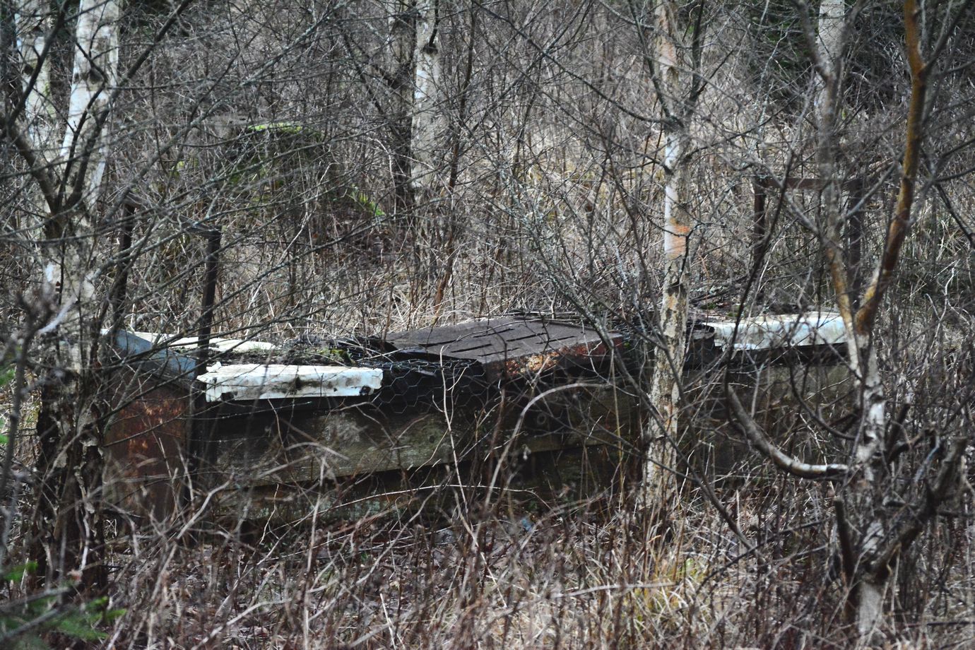 This is an old fox trap and it has been standing here since long before I moved to the village. No it didn’t kill the animal, they used it for trapping foxes to see if they were healthy. Fox scabies (a sort of mange) is a horrible way for a fox to die, they scratch themselves to death more or less. So if the fox was hit by it they ended its life so it wouldn’t have to suffer if it wasn’t they let it loose again. It did however not only trap foxes, my dogs were in it so many times that they finally stopped using it because it needed to be replaced (it’s rotten since long) π π π They put all kinds of goodies in it and of course my dogs went in and got trapped π π π This was back in the days when I had dogs that actually listened to what I told them π π π