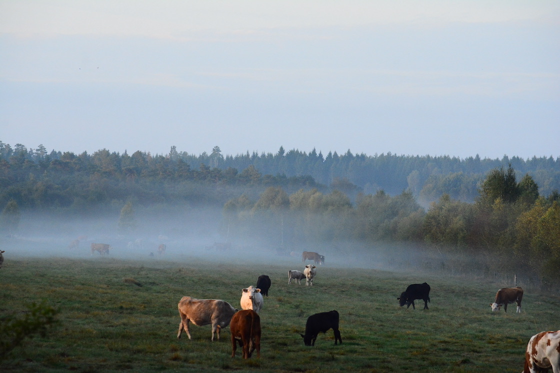 I woke up in the middle of the night because too much tea I guess π π and naturally I couldn’t fall asleep especially quickly leading to me sleeping unusually long and when I looked out the window I could see the ground was covered in unusually thick fog. The dogs and I rushed to go outside, took perhaps as most ten minutes and by that time almost all of it had vanished. I was a bit annoyed to be honest but then the sun shone and the leafs in the trees looked like they were burning, so I stopped being annoyed π π