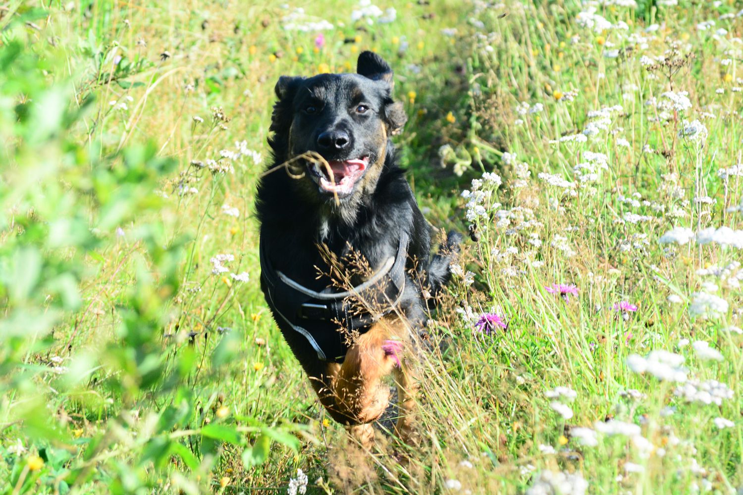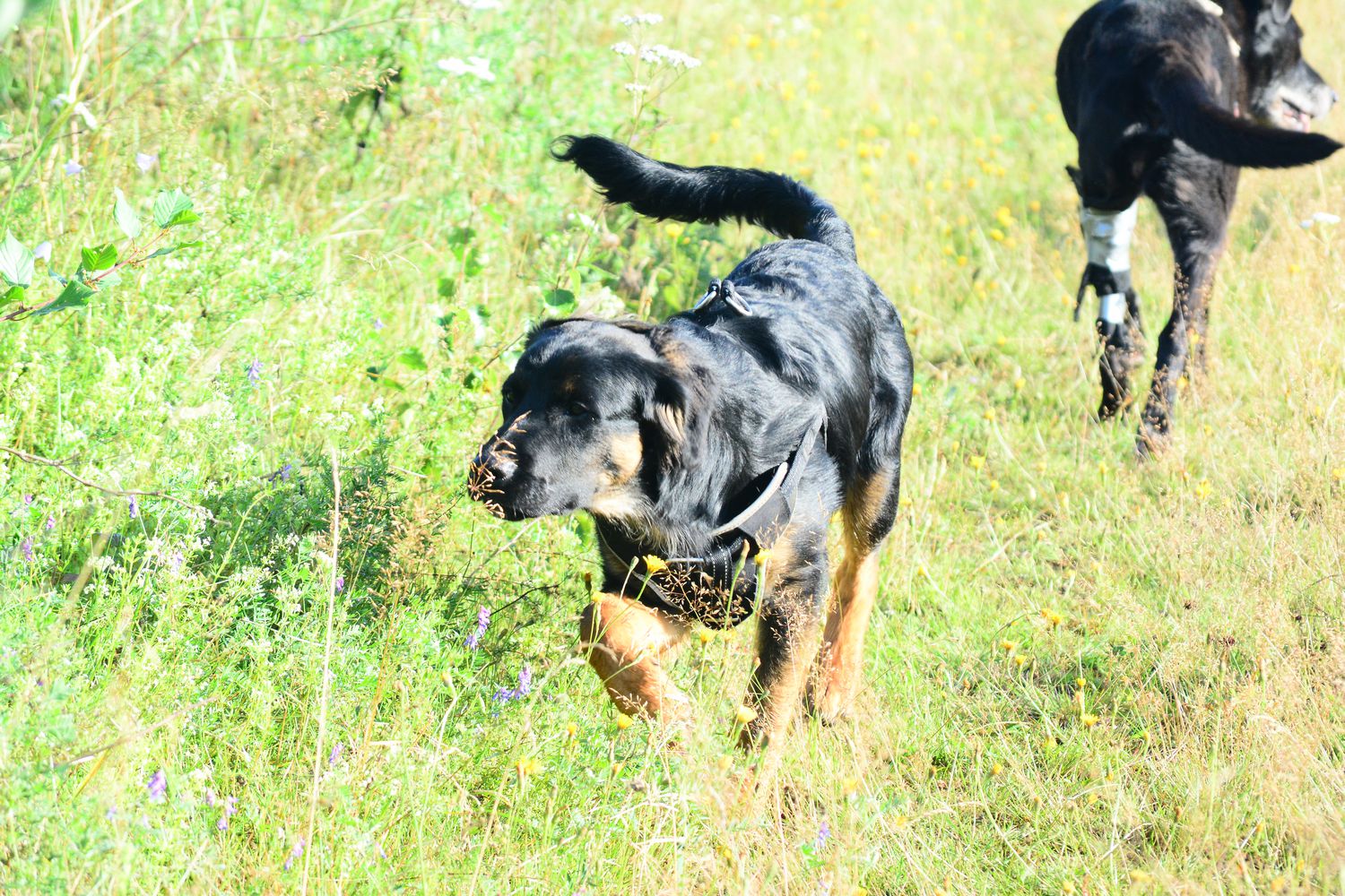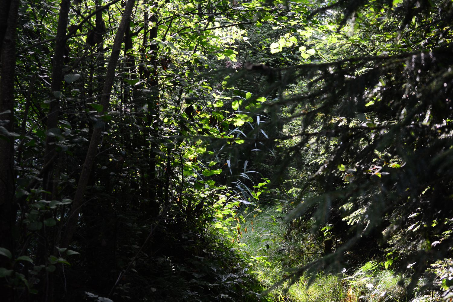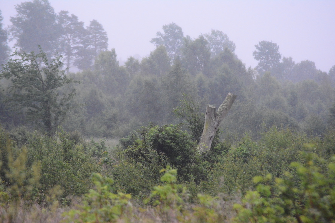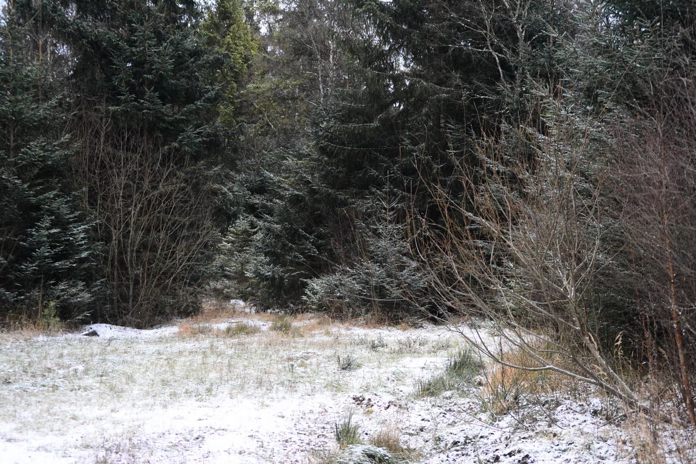 Nothing special happened during our walk until we were almost at home again, one of the fox cubs stood beside the gravel road and this time I could get a few photos of it. It didn’t notice us because it was looking at the other direction and we stopped rather early so we wouldn’t scare it away. Alma started to whine loudly but for once she listened to me and just looked at the fox. It still has its baby fur but has grown rather large so I guess it won’t be long before it is time for it to find its own new home.