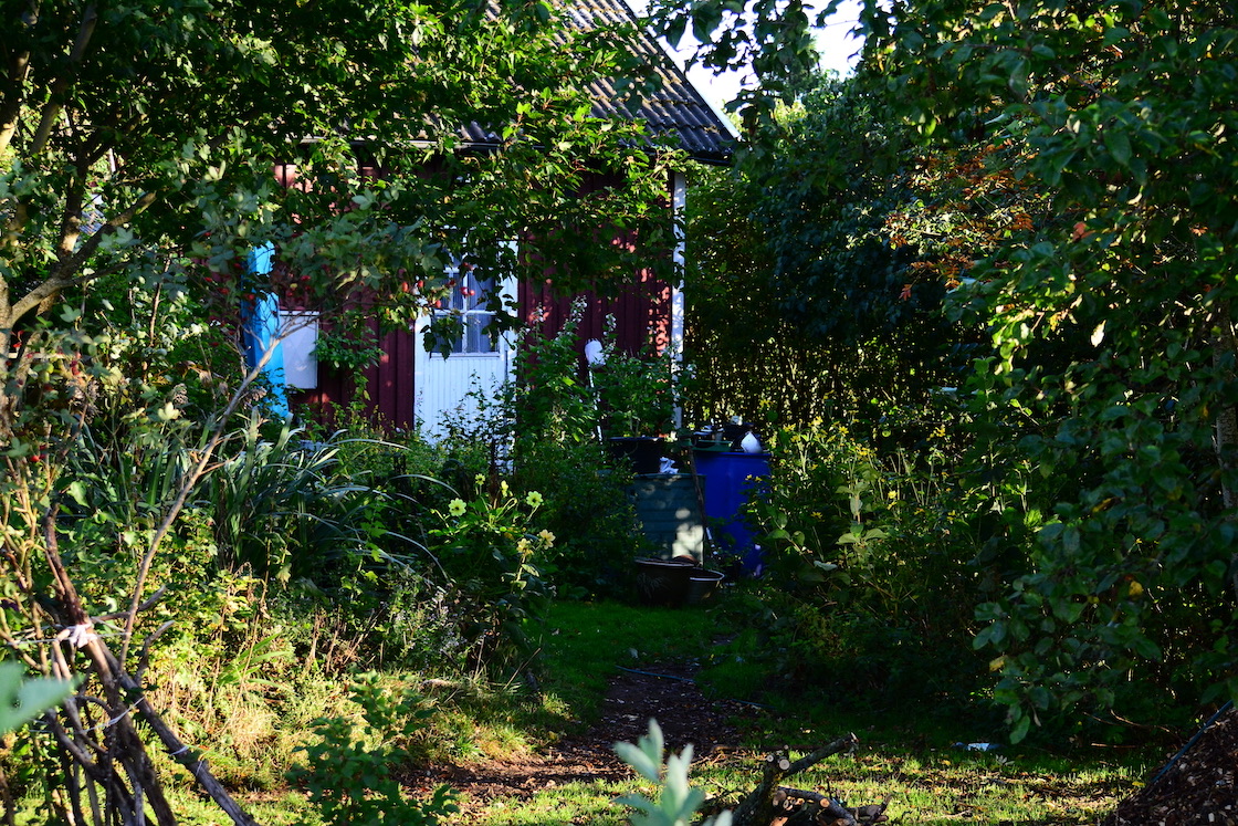 Since I now have found my jigsaw I thought why not cut those barrels open so I finally have those extra rainwater barrels I’ve been talking bout to do as soon as I found the jigsaw 🙂 I do like to play with machines but I must admit I’m not good at it 🙂 🙂 So I cut one open at the top and placed it by the entrance door. Then I thought that it is actually impossible to have too many rainwater barrels and I knew I had two more barrels I could use (blue plastic ones, I’m not much for the aesthetics to be honest. Yes a rainwater barrel in oak do look good but costs a fortune especially since we don’t have any distillery where one can get them for free anywhere near 🙂 So blue plastic ones will do great 🙂