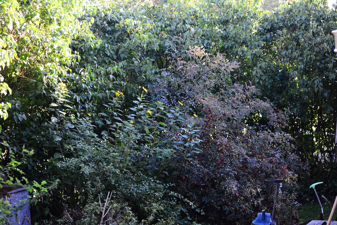 the temperature never rose above 12C (53,6F) in the shadow but the sunshine was so warm today that I had to change from a sweater to a t-shirt. It was impossible not to enjoy it so we spent a big part of the day outside in the garden. I really didn’t have anything to do so I decided that those roses I had cut down and would put in the compost grinder next year (mostly because of the thorns) would be better if I did that today 🙂 This rose has millions of small but awfully sharp thorns but they soften a lot if being wet for a longer period of time so the branches can be handled without too much problems. The problem is that not all become soft so now I have lots of tiny thorns in my hands because why would I use gloves 🙂 🙂 🙂