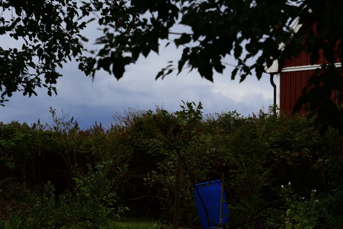 So I made one more to the greenhouse and realised I have at least one extra barrel in the old garage (so two more instead of one more) but by then I’d started to look at those thorny branches so I might do another rainwater barrel tomorrow and place it  on the other side of the greenhouse 🙂 🙂  in between I went indoors to have some tea and ice cream 🙂  Now it’s dark outside and I could hear rain hitting my window so tomorrow I’ll check how much water has fallen in to the new barrels 🙂 At the moment however my biggest concern is to try and remove as many tiny thorns I can from my hands, they itch like crazy right now 🙂
