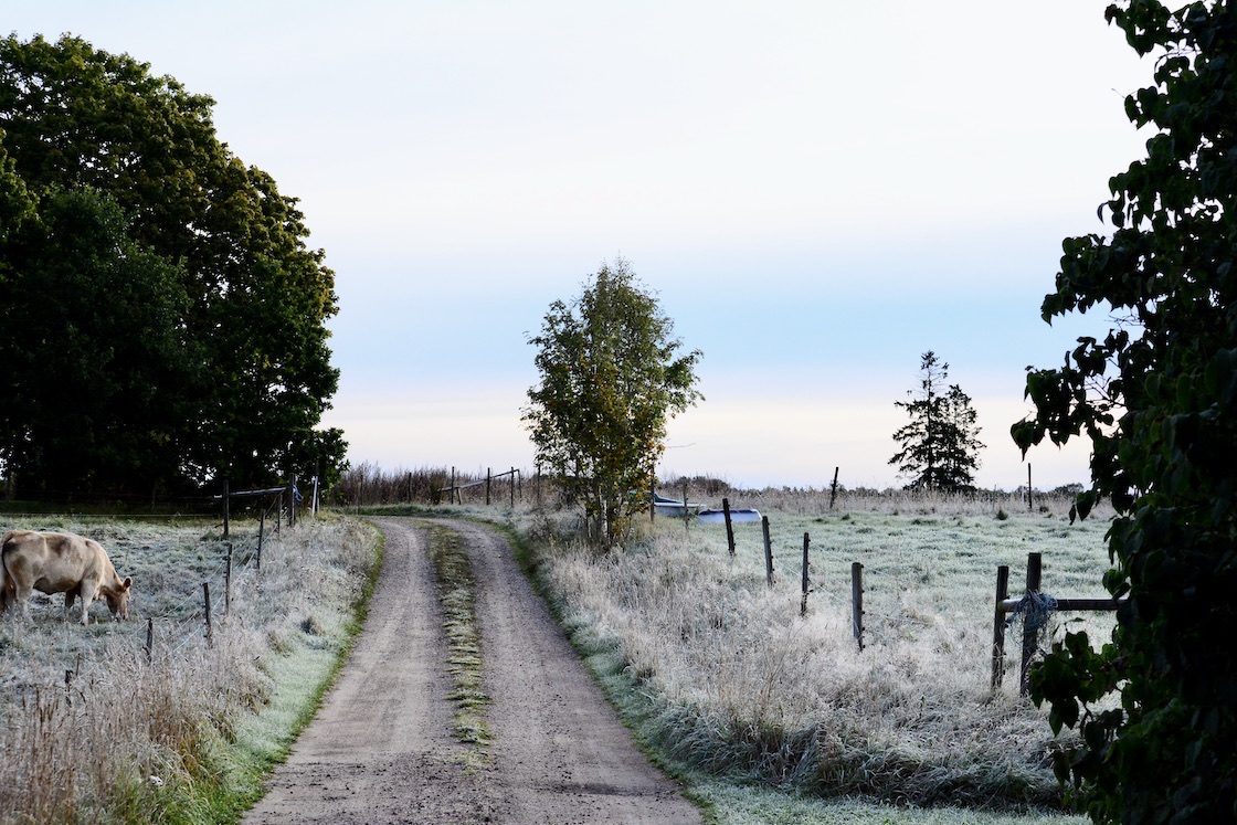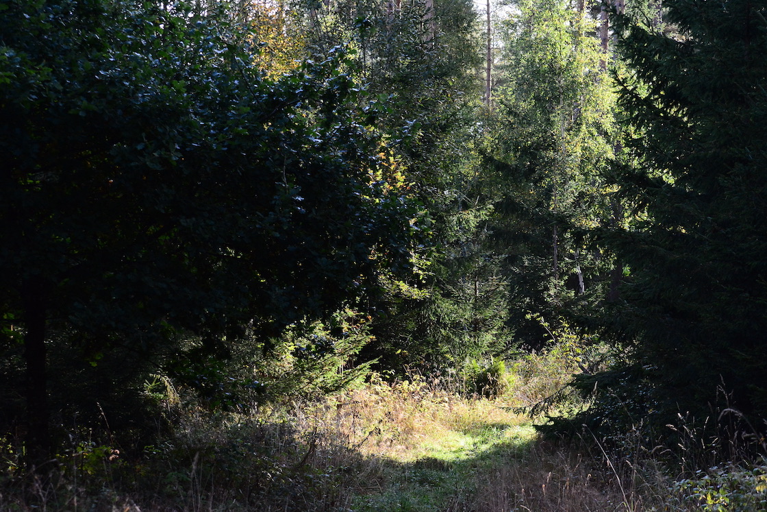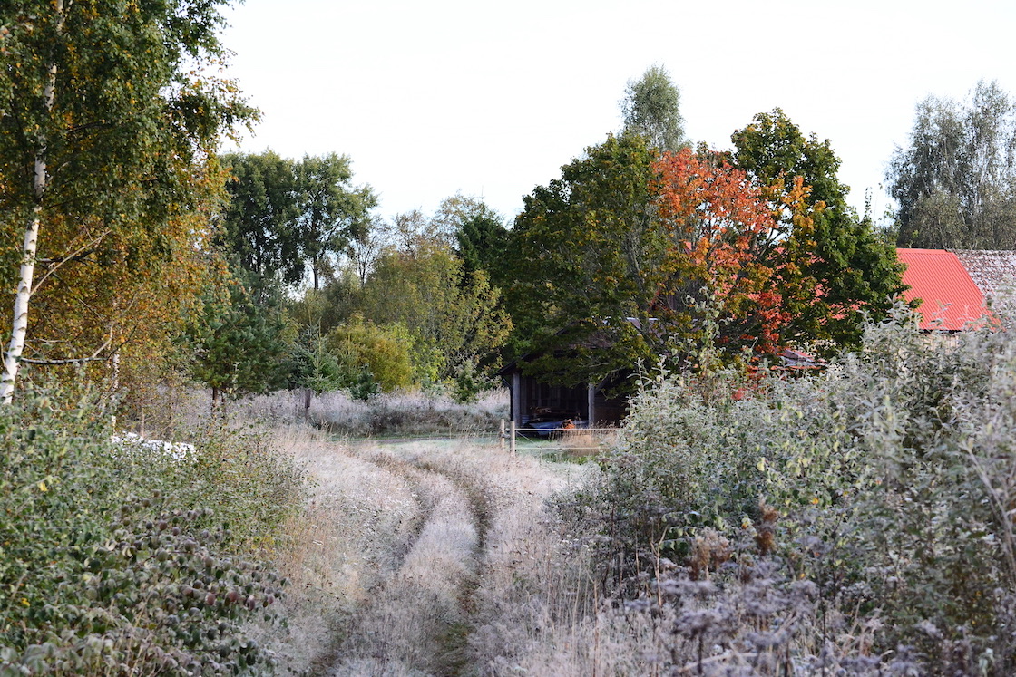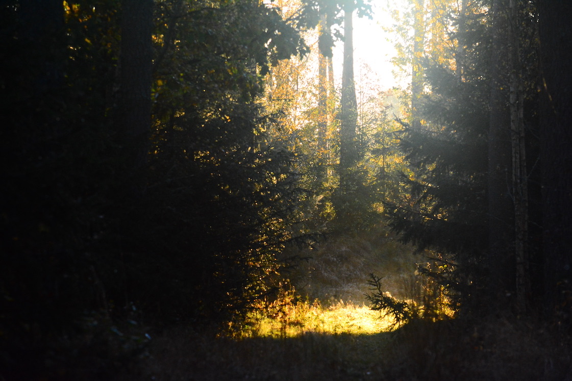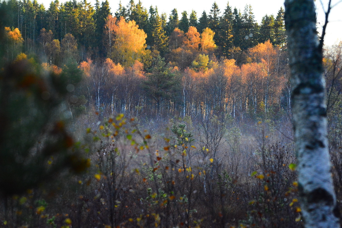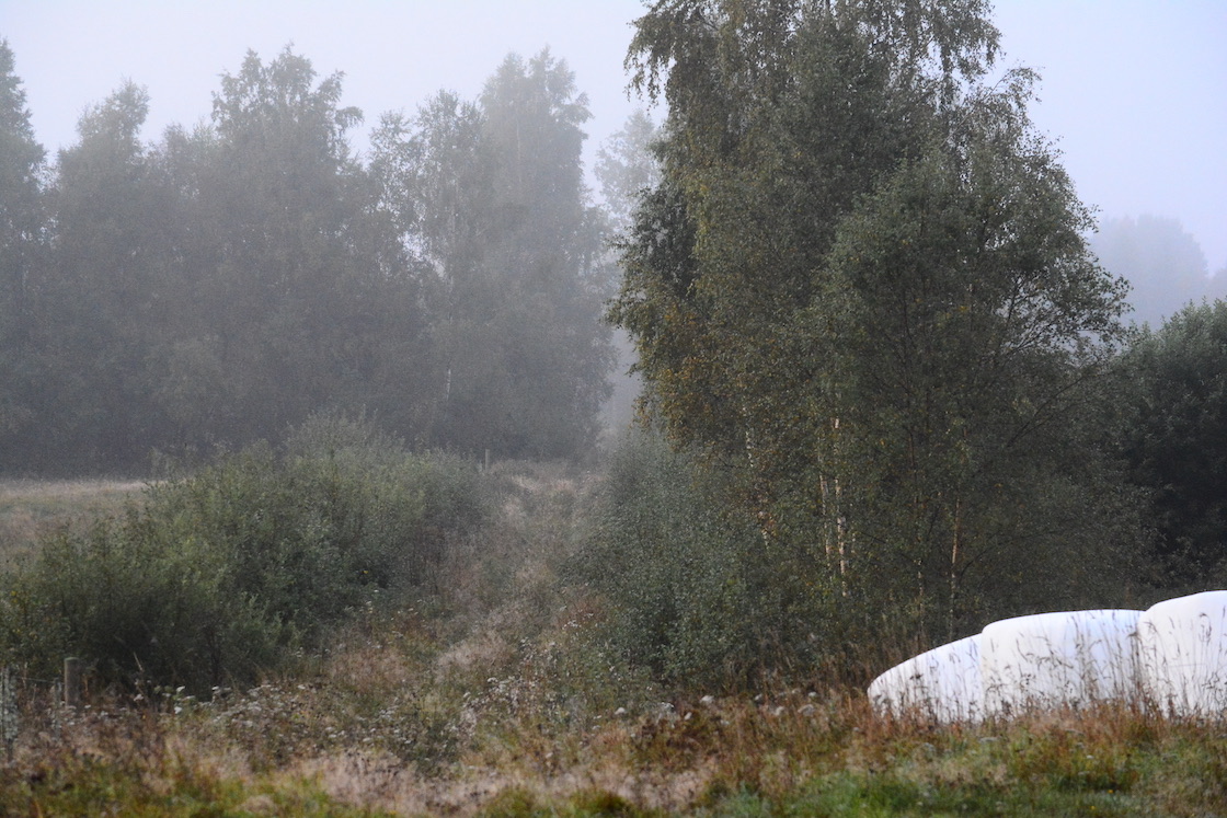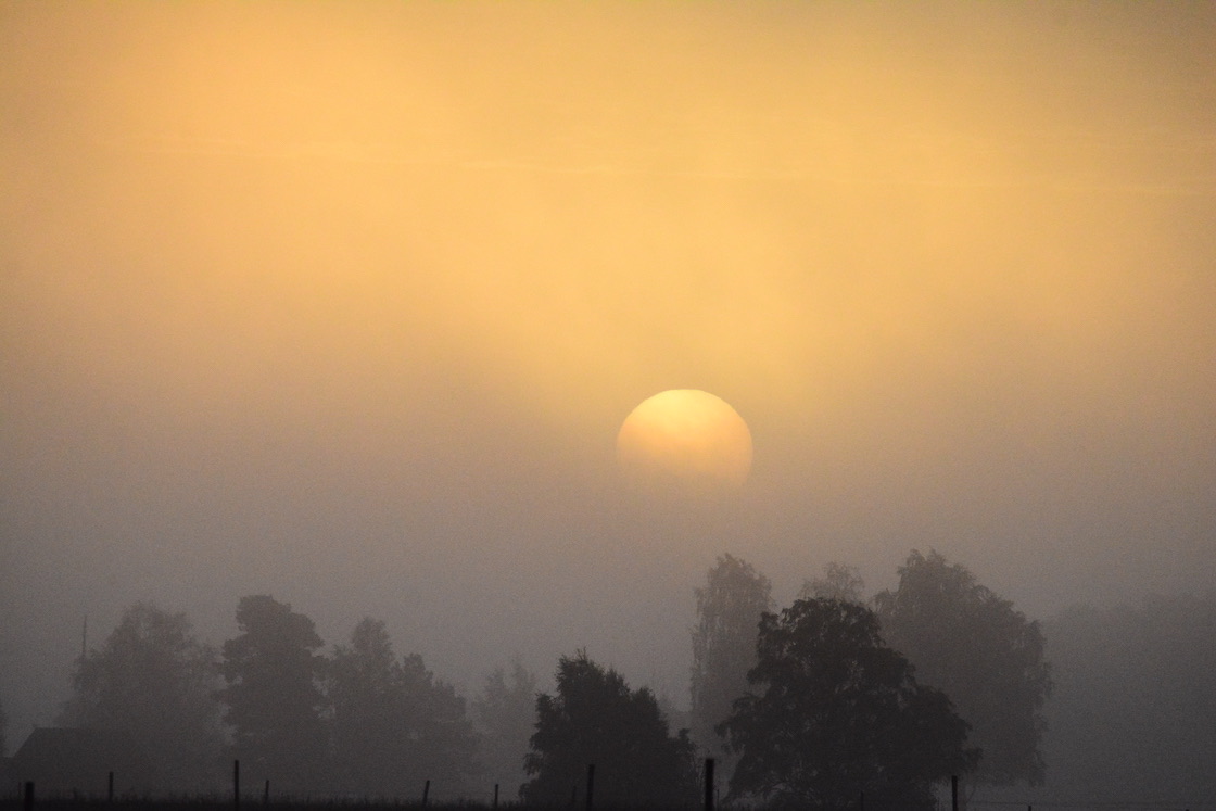 I woke up in the middle of the night because too much tea I guess 🙂 🙂 and naturally I couldn’t fall asleep especially quickly leading to me sleeping unusually long and when I looked out the window I could see the ground was covered in unusually thick fog. The dogs and I rushed to go outside, took perhaps as most ten minutes and by that time almost all of it had vanished. I was a bit annoyed to be honest but then the sun shone and the leafs in the trees looked like they were burning, so I stopped being annoyed 🙂 🙂