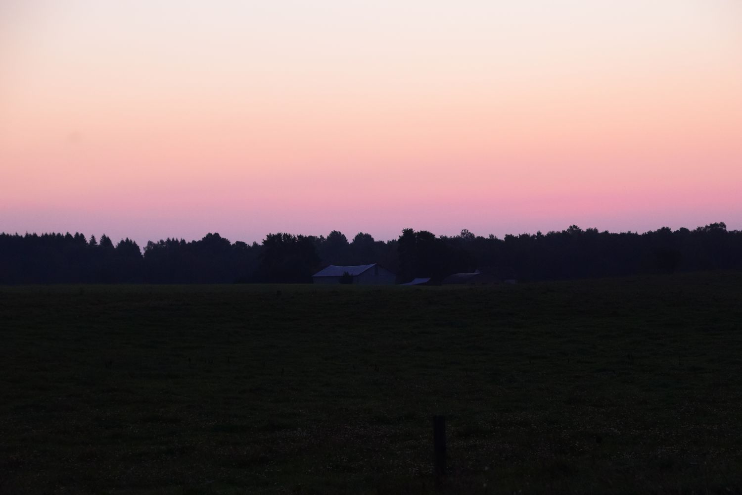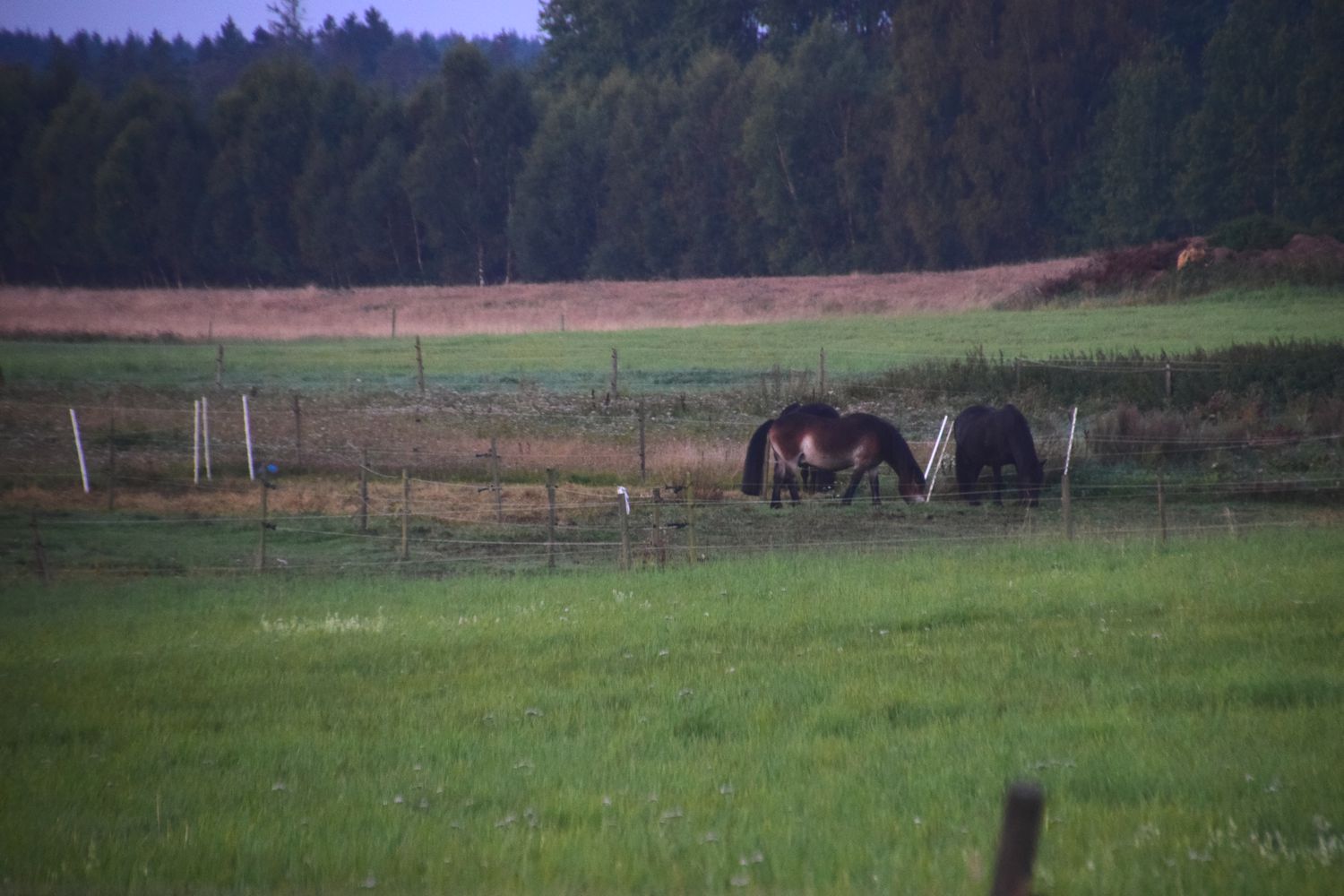 We started our morning walk before the sun slowly started to rise up in the sky, around 15C (59F) and it felt like an early summer morning, even some birds sang. I wasn’t sure if there were hunters out in the forest because some of them were here yesterday evening. I wasn’t sure if it was to prepare for today or staying the night to hunt wild hogs and to be honest I was too lazy to check if the sign was up that they put up every time they’re out there, so we had a walk in the village instead. That also guarantees that we wont have to be creeped out by moose flies that has started flying around. I truly hate those flies!