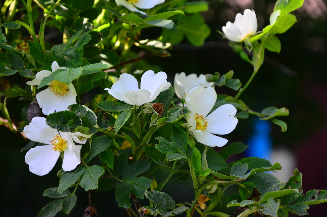 I will be surprised if the peach tree survives next winter, It is hit by leaf curl disease and this time it’s the entire tree. I’ve heard peaches usually can handle it when the tree is older but I’ve had so many peach trees dying because of it so I doubt it.I’ve tried to remove this rose so many times that even I am beginning to give up now, it’s a garden variety of the Cinnamon rose and happily spreads via its roots.Soon I’ll have my first strawberry 🙂
