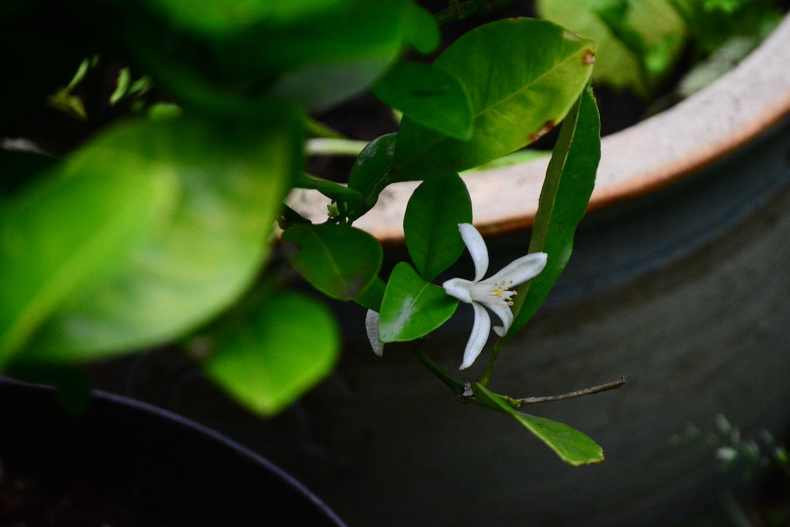 This citrus tree, a Kalamodin ( I think it might be spelled Calamodine in English) never fails to flower, no matter how bad it has been treated. New flowers despite it almost died in the last frost. It gives small bittersweet fruits perfect for jam and I guess it could be good to make kalamodin ade as well.