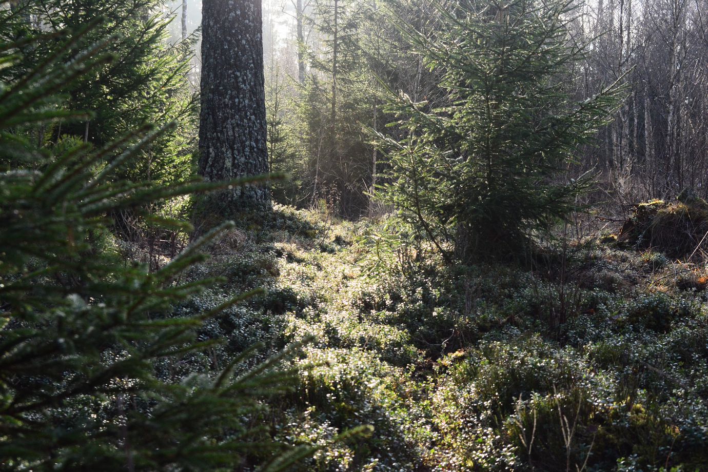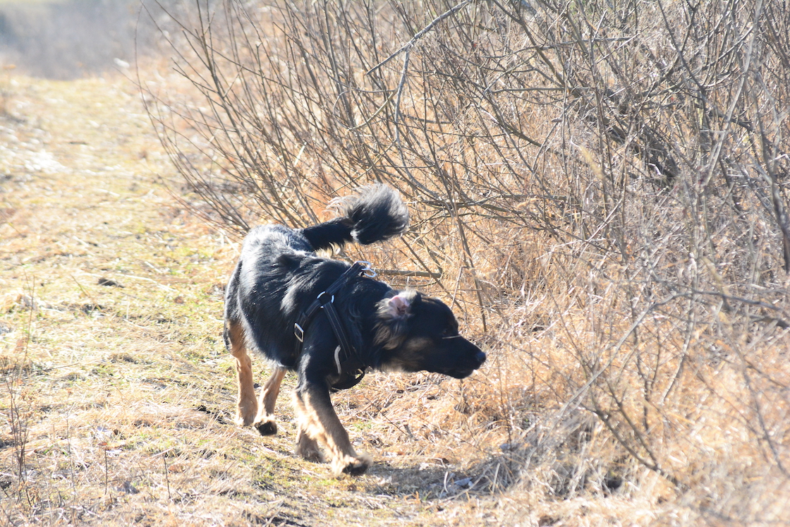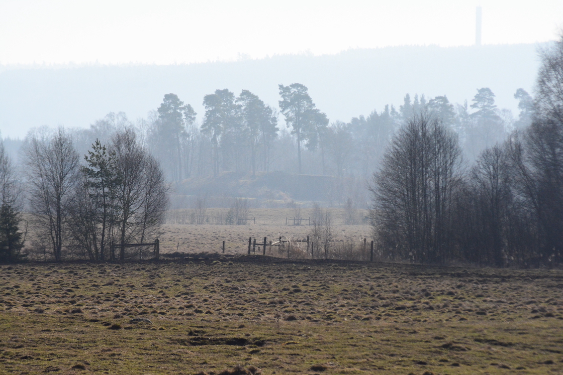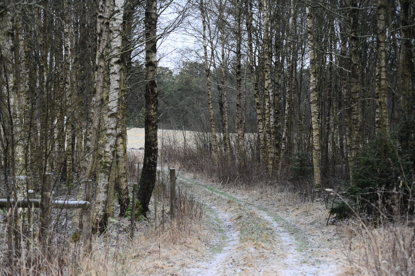We went out for our morning walk as soon as the temperature had risen to -9 C (15,8 F) and since would be walking down to the creek the sun would warm up the air quite fast when walking between the trees on the gravel road. Alma wouldn’t make our walk especially enjoyable today and she showed that as soon as we started to walk but I couldn’t figure out why, not until we came closer to the creek and I saw that the horse guy was working today. It is something with Alma and especially horses and the cattle in the neighbor pasture.
