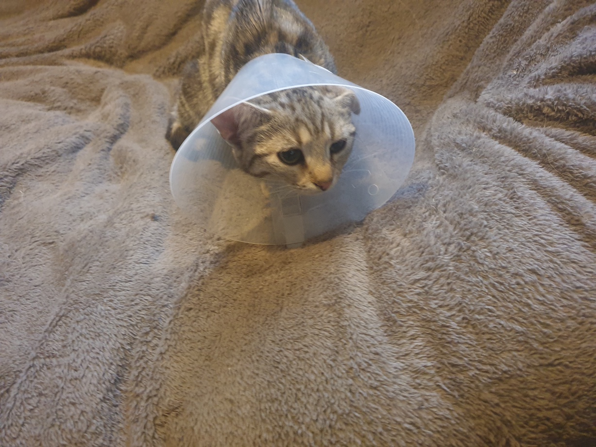 I had to go back and pick up Sara before lunch and she was not a happy camper but I doubt that she actually managed to notice that we were going back home again. They checked her ears and it turns out she had ear mange so we went to the pharmacy on our way home. Almost the first thing she did was to tear off the cone of shame but I managed to make it a bit more tight but still let hear breathe so I hope it stays on at least during the night, she’s supposed to have it for ten days but that’ll never happen 🙂 🙂 🙂 The toughest job will be to keep the dogs away so they don’t clean the area where the surgery took place. I won’t argue with her if the cone at least stays for four days 🙂