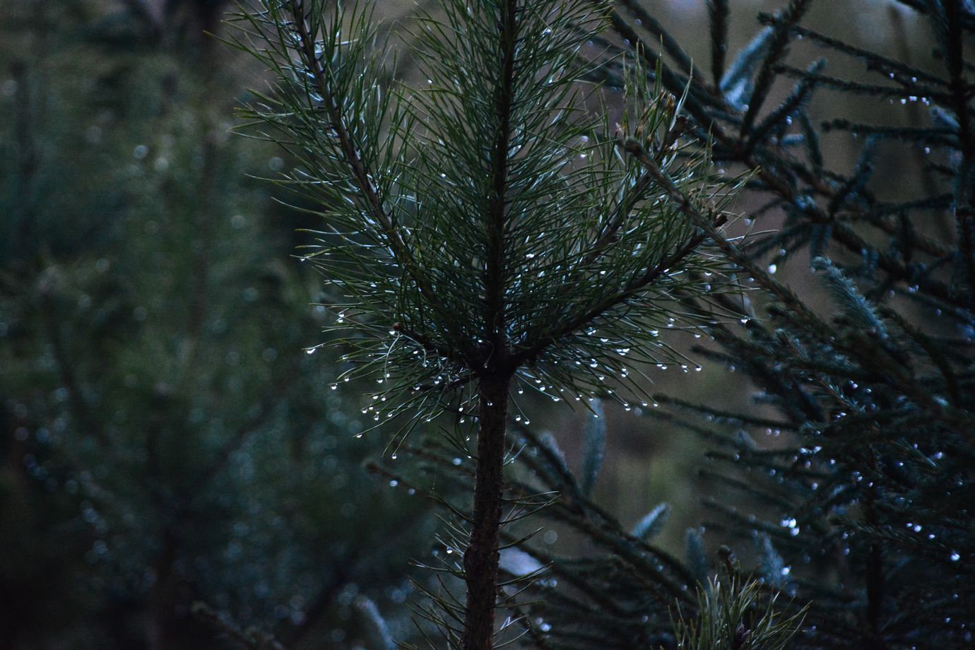 It’s almost always completely dry beneath the branches on a spruce so it’s a good place for animals to stay on rainy and snowy days. We used to have a huge spruce not far from the village where I and the dogs could take cover when we were surprised by heavy showers or hail. Just a few drops would reach us.