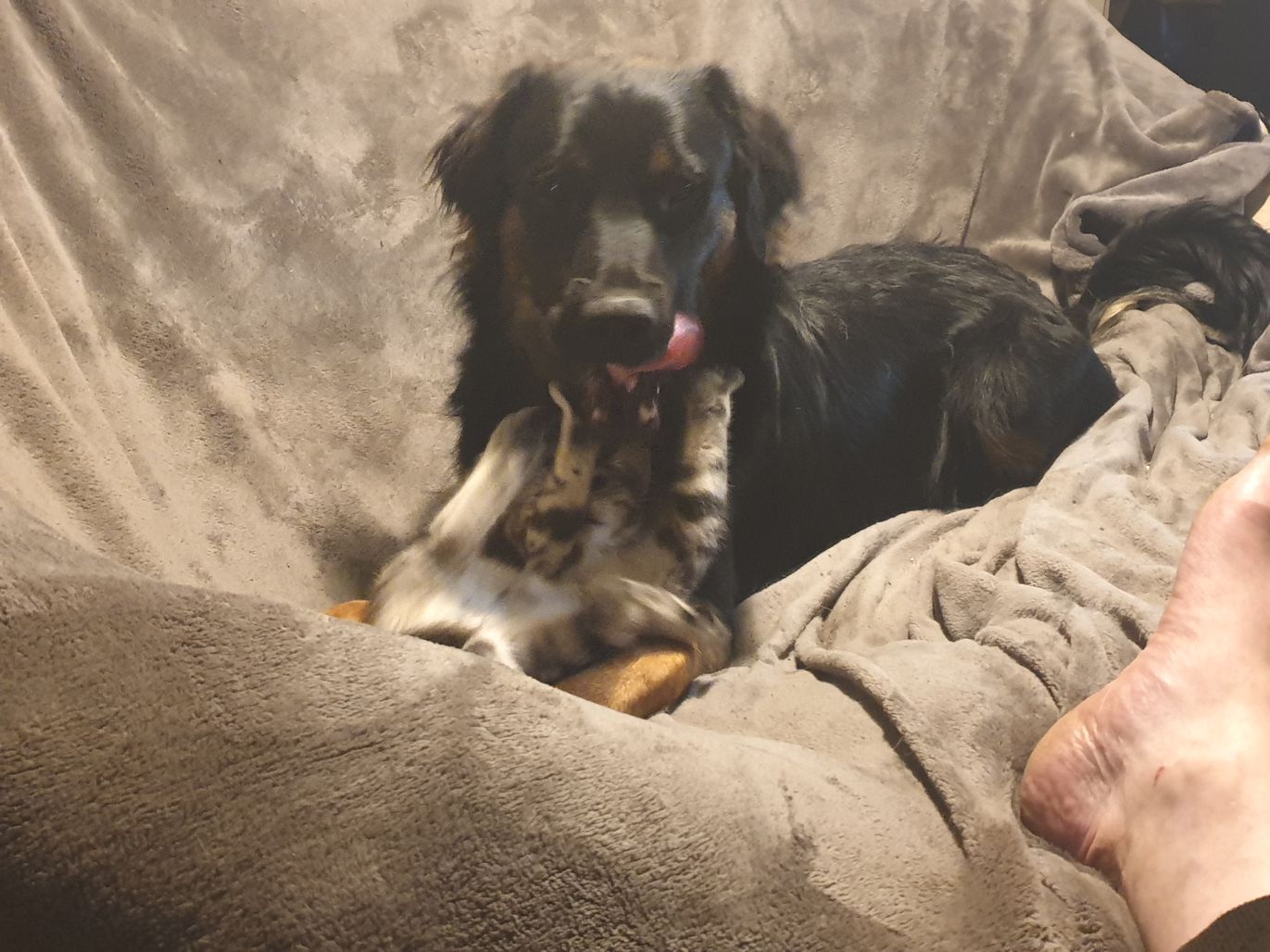 The weather has really been boring for a couple of days now but it is well above 0 C (32 f) so I’m not complaining too much. The cottage becomes a mess though because since the dogs don’t want to be outdoors besides for walk they play indoors instead 🙂 🙂 They aren’t allowed to do it in the living room because of the aquarium so mostly they play in my bed 🙂 🙂