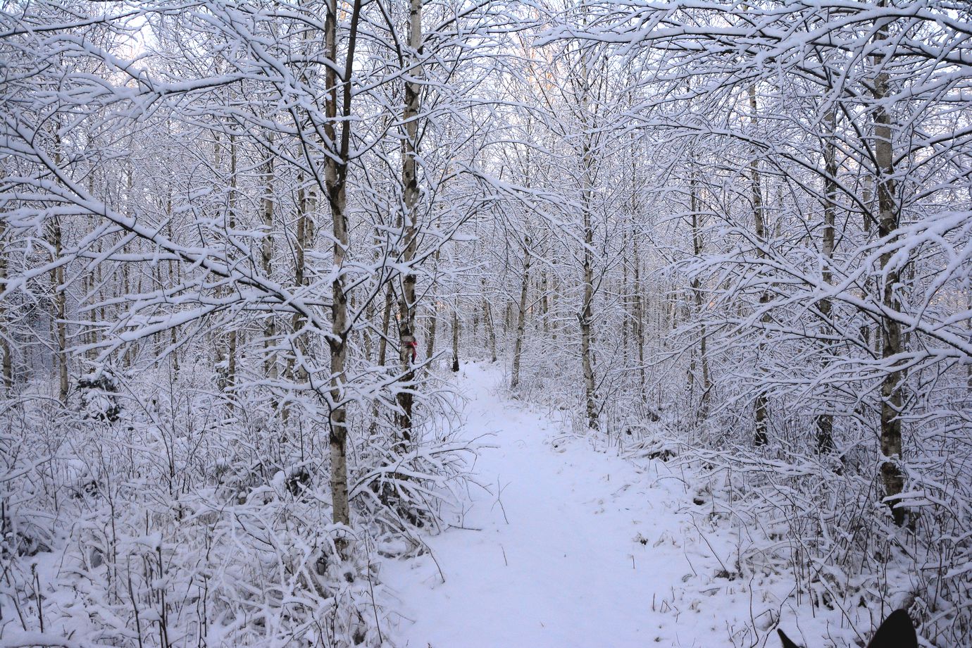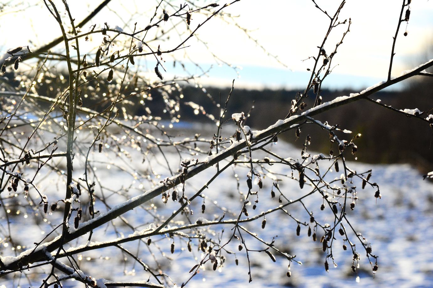 Yesterday was very different from today when it comes to the weather. Today we had sunshine and almost no winds, yesterday very windy and lots of snow falling, so I’ll show some of those photos today. Alma started out behaving well, she pulled the leash but was rather quiet for once, Malkolm however had decided that if she was pulling the leash so would he so I was quite grumpy when we reached the forest.