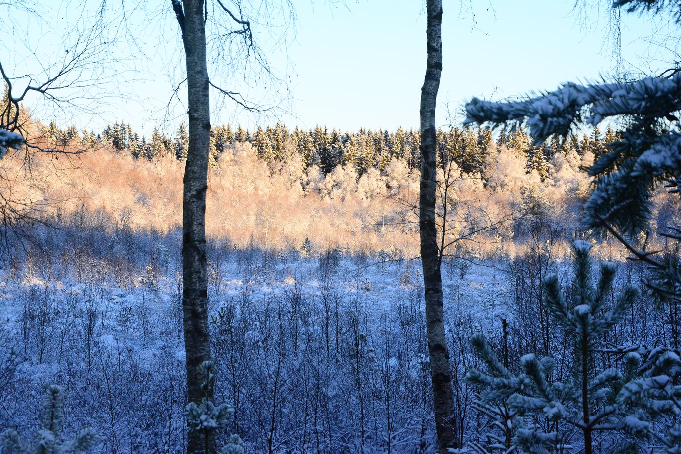 They’re guessing we’ll have lots of sunshine tomorrow as well and I do hope the horse guy is elsewhere tomorrow or arrives late because it would be nice to be able to walk down by the creek and/or in the older forest. Well I think that perhaps the water has frozen enough so we can walk out to the island in the bog, it isn’t nice to sink down half a meter /yard in half frozen mud 🙂 🙂