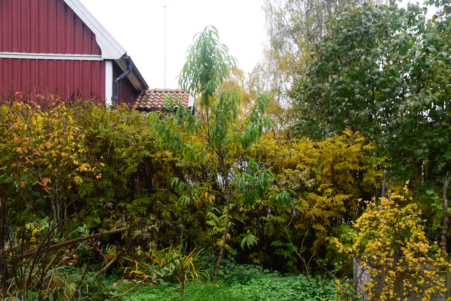 I can’t remember when the leafs stayed on the trees for this long. Some still have green leafs as well. I need those that will spend the winter in my cool cellar to start dropping their leafs, well the tea tree/ bush will keep its leafs so I can bring it in already now but the small pear trees, peach tree, all the apricots and what else still is out there need to drop them now, I really don’t want all those leafs on the cellar floor π Also I need to dig down the rest of the plants that will spend the winter outside but I still haven’t figured out where to plant them π I guess I’ll just do the panic thing and dig them down together in the ground with the pots still on and then figure out where to plant the survivors next spring.